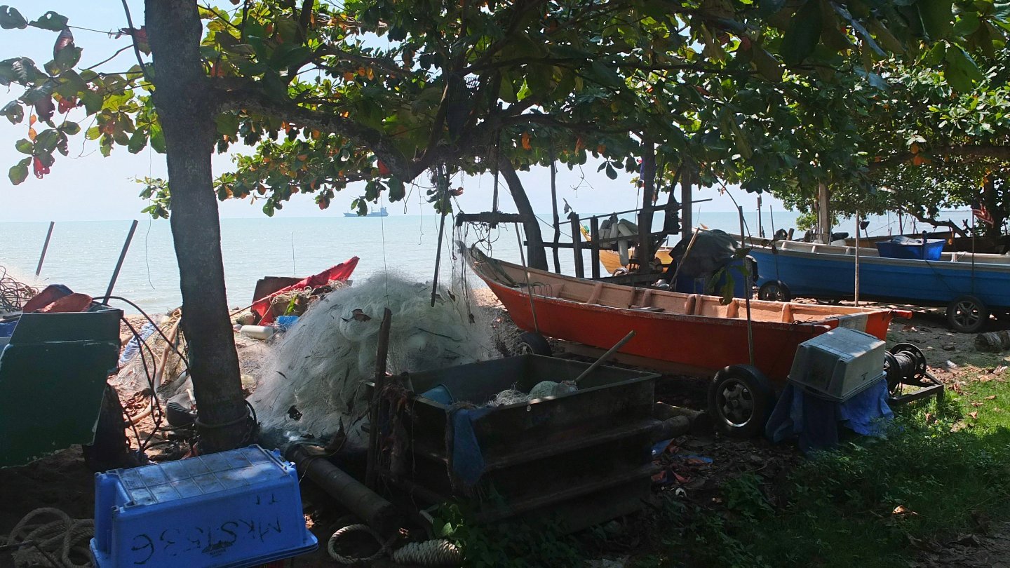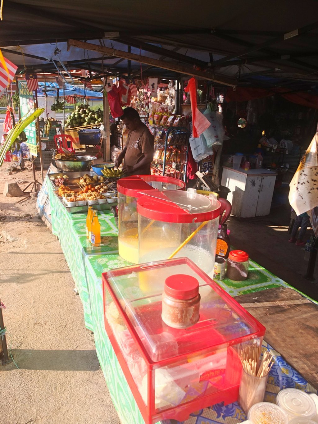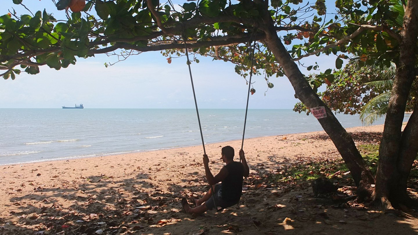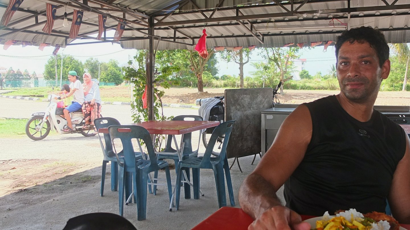 After that we kept cycling a bit further and stopped at another warung along the way where we got some “Malay” burgers (to change a bit from the rice and noodle). After dinner, we keep cycling a bit more again, looking for a spot where to camp. We met a guy who did not speak any English but body language helped. He brang us to a carpark next to a beach. From there we could walk a bit further along the beach and found a nice spot under big trees, perfect!