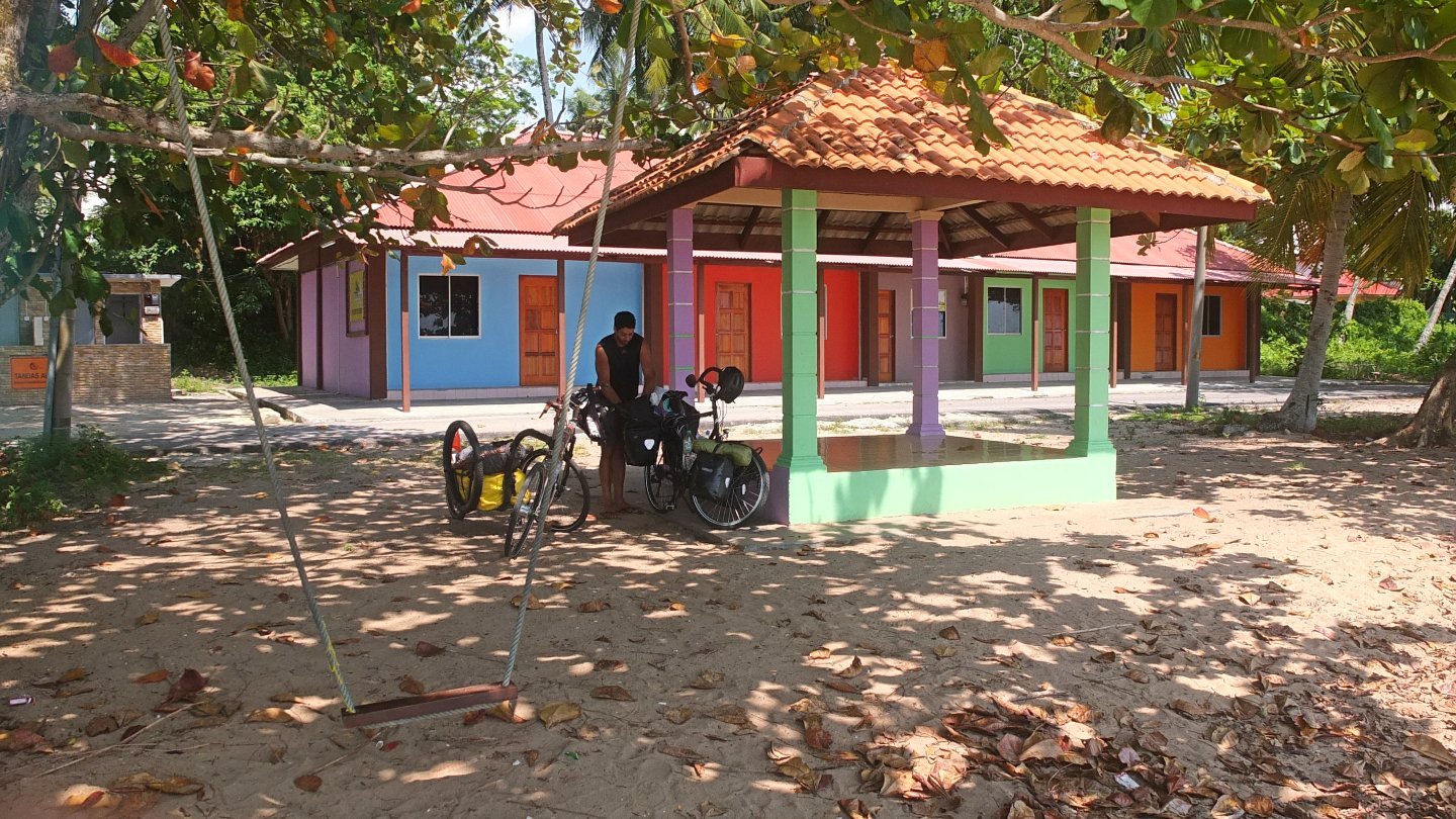 Oooh, that’s goooood :-) Maybe an hour later, a guy came to us. He pretended to be the owner of the colourful houses where we sleeping front of. Fortunately we did not have to pay to stay. He started with some common questions but rapidly talk about massage and even sex. We finished by just ignore him and continue our nap. Finally the guy gave up and left the place.