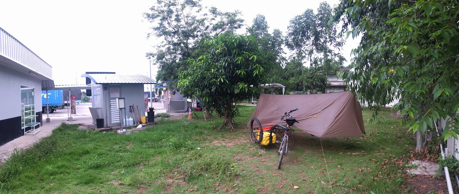 I’m not really into taking pictures these days. I haven’t done any extraordinary things since I came back in Thailand. The last night was okay, surprisingly not too noisy. I’ve found a spot at the back of the petrol station with trees and grass (as you can see). Yesterday, during I was setting up my camp, a woman passed by so I told her I was going to camp here just one night. I don’t really know if she was agree or not but nobody came to kick me out, fortunately :-) This morning, I packed everything and came back to the same Amazon cafe. I stayed there all day and cycled later this evening with a bit a night cycling too.