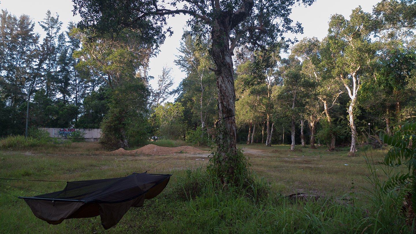 This is the spot we found in Nopparat Thara beach and where we slept the past 6 nights. That was very quiet. I even left my trailer during the day and my clothes to dry. Nobody came a part the gardener who was cool.