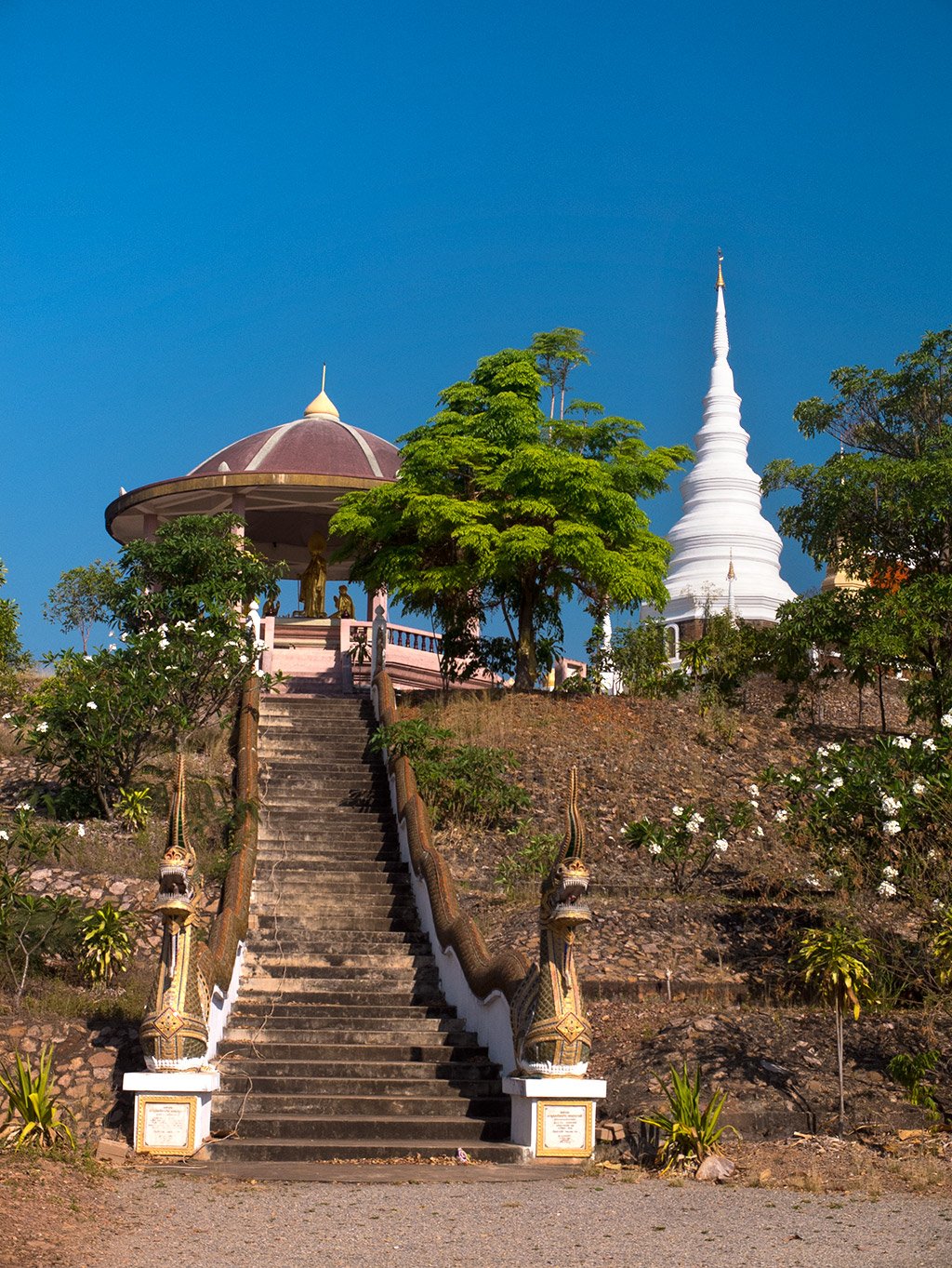 Today is THE day! The windy, hilly road is in front of us. All we have to do is smash it! Actually it was easier than I imagined. During the climb we could even enjoyed some downhill. The steepness of the road was gentle and the traffic, a part few trucks, was mainly quiet. After two and a half hours (including break time), we reached the summit and visited… a temple, of course. Monks (and religions in general) have good taste. They always build temples on hills, close to the water or anywhere we can see them.