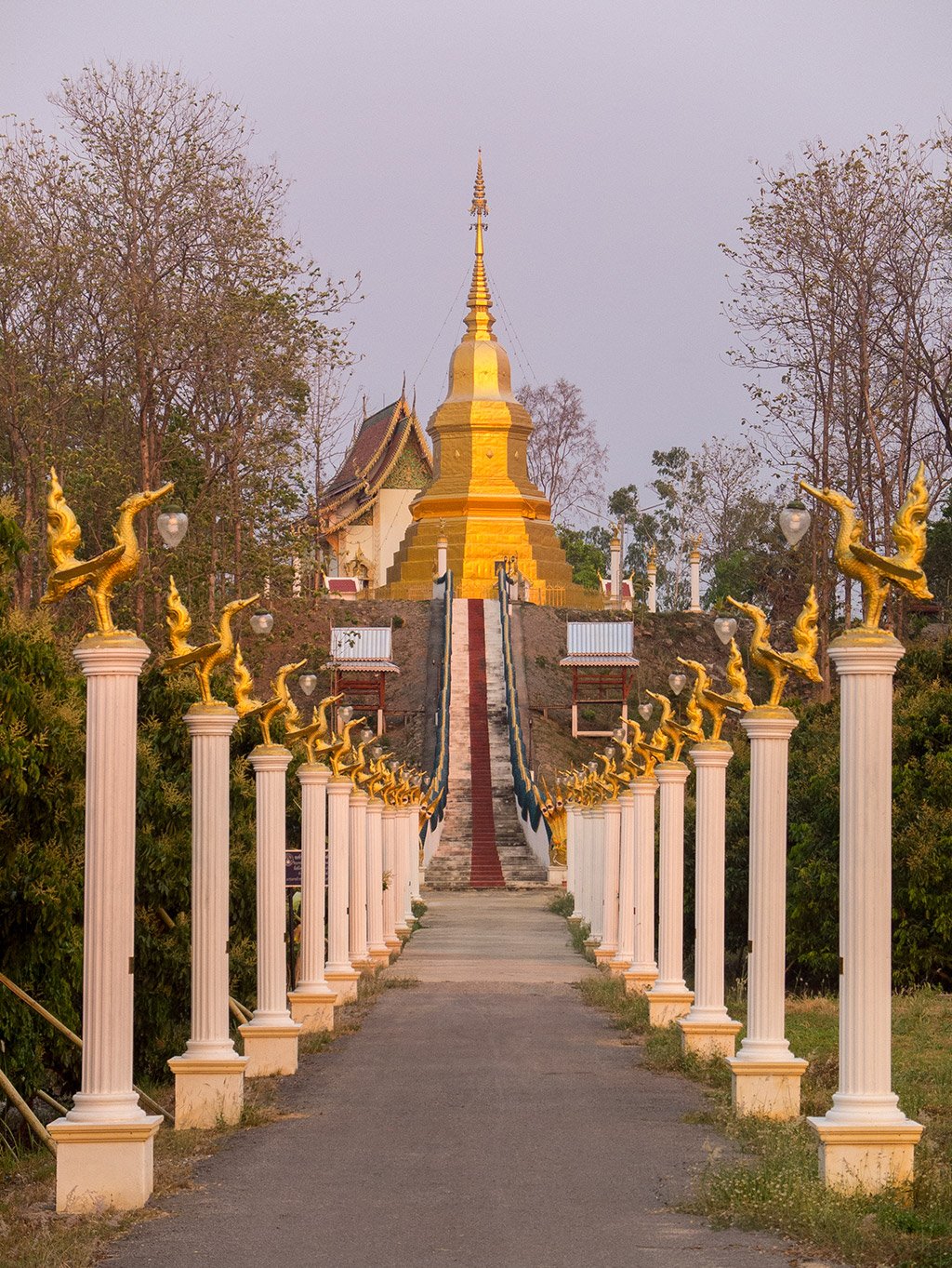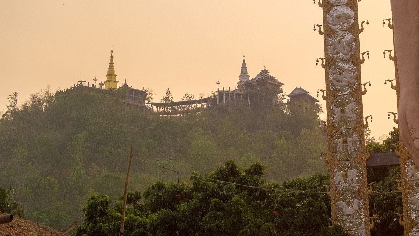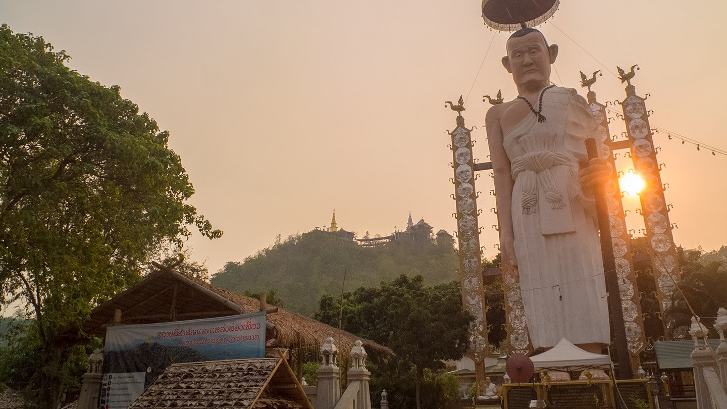 Around 5pm we went back on the road again for the last step of the day. A young monk we met this afternoon recommended us to visit this temple. Well, we are not going to climb this mountain now. The view from here is enough. This statue represents a notorious monk who did very good things for the region. I don’t know what he did but it must be respectful.