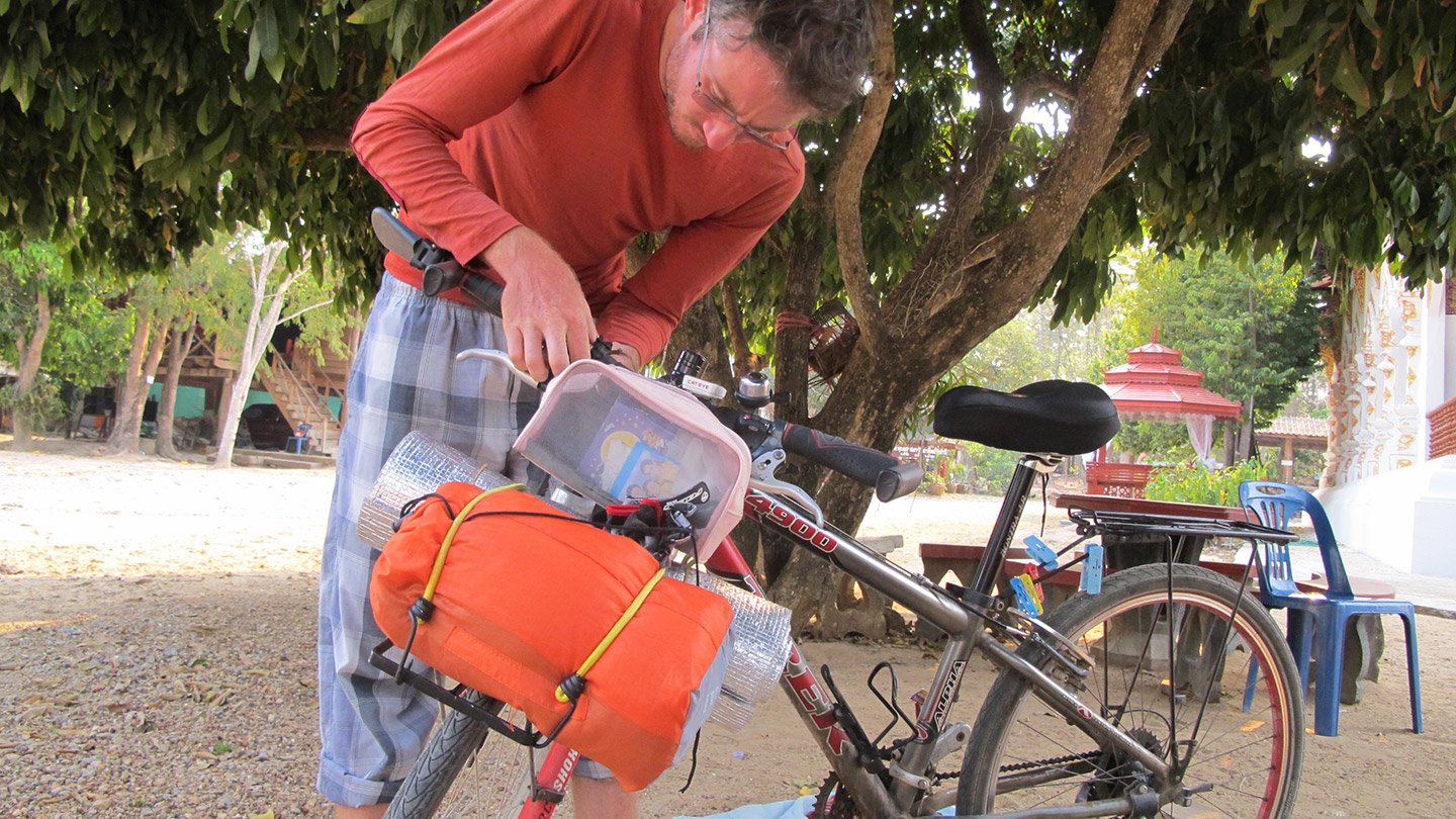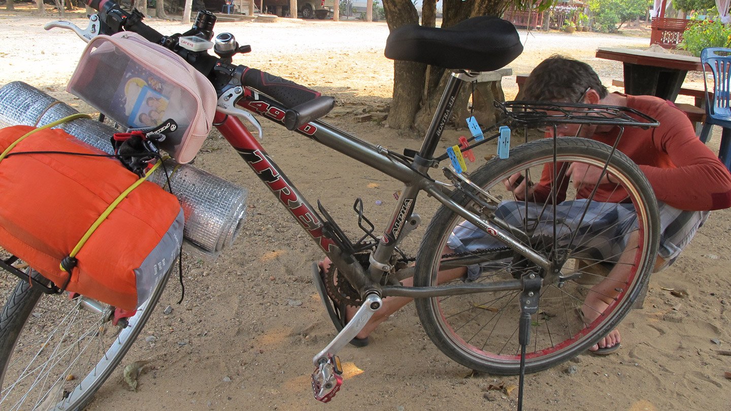 Finally we didn’t have a full lunch, just a drink and some snacks we carried. Then we kept on going until we found a temple where to have a rest. Pita has some trouble with her gear system so I have a look.
