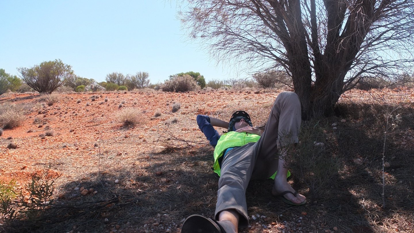 I’ve certainly spent an hour doing nothing than sleeping on the only table I had on sight when three cars stopped for a rest I guess. I had a chat with those guys and explained to them my problem. Straight away they proposed me to drop me off in Coobed Pedy which is 120km further or a day and a half for me. Well, my trailer’s hub would certainly survived until there I guess but I’m going to damage it even more. I’ve accepted their kind help, we put my bike and trailer onto the top of one of their trailer and…