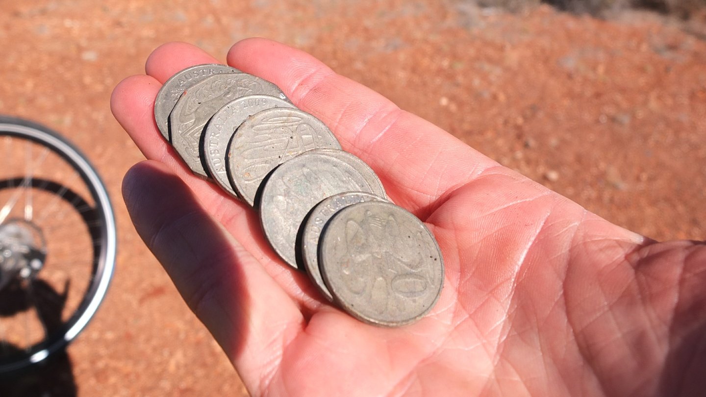 Nope, the wind is still against me but look what I’ve found :-) More than $2 on the road!