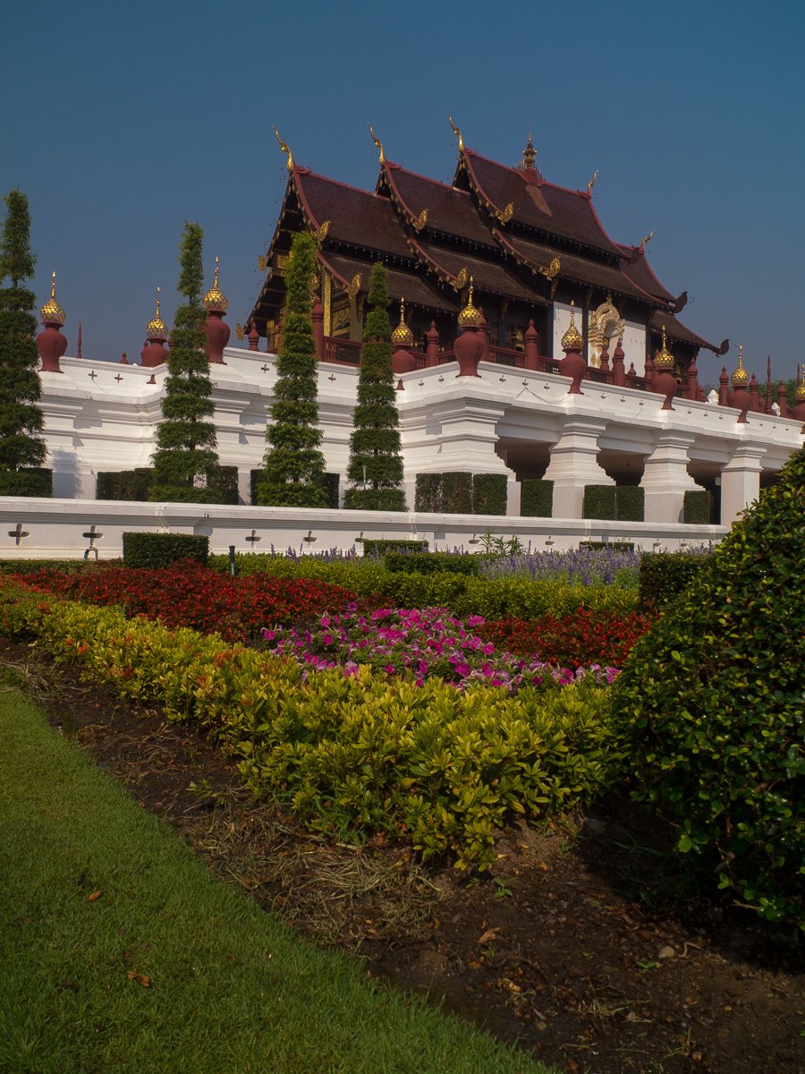 Today we visited the Royal Park Rajapruek. It has several different areas like a garden, a “district” with different cultures represented by their building construction (like India, Japan, Cambodia, Bhutan, and others). This one was my favourite and represents Bhutan. It has very nice style and colours. Of course, the main attraction is the Royal temple (I don’t know if I can call it like this). Anyway, let’s start the visit :-)