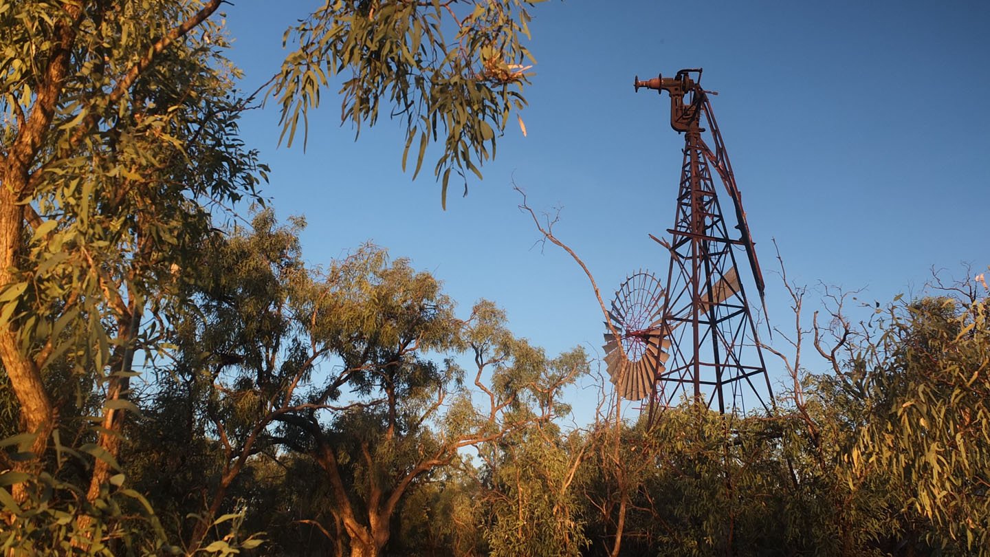 Over there, the roadhouse and the Stuart highway.