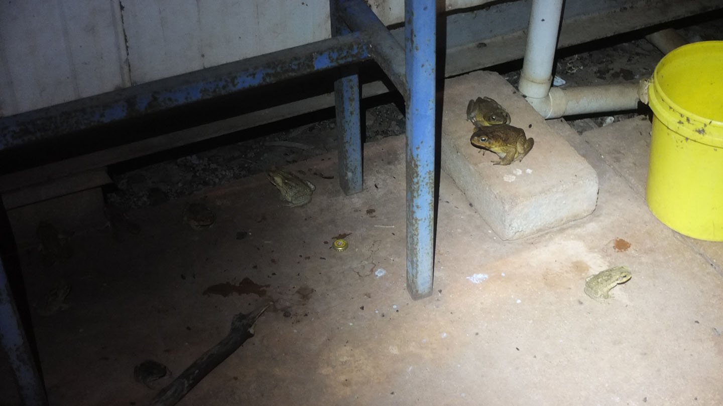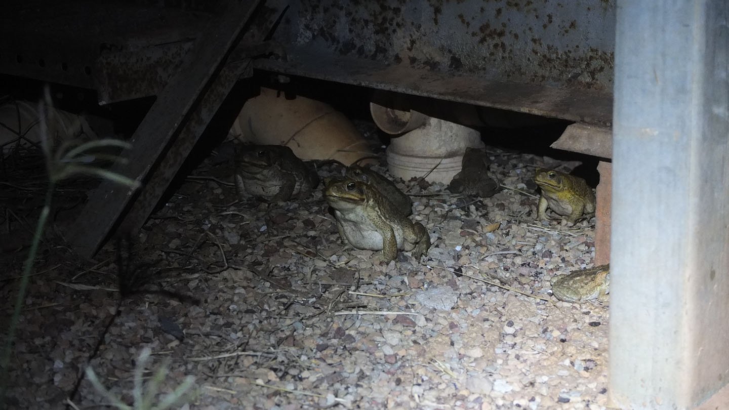 And even bigger ones! The big fat one could be Toad frogs which is a pest in Australia. The whites introduced that frog to get rid of a bug that was destroying the human cultures. But this tod became out of control (like everytime) and now other animals die because of this one. In fact, the Tod (Todd?) frog is venomous and animals here don’t know that…