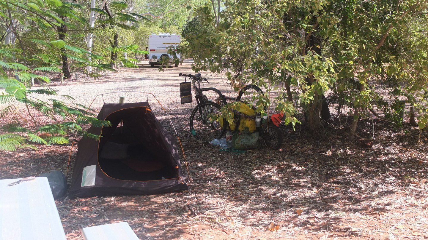A relaxing day today. This campsite is very nice and very quiet. I think I said that already :-) I’ve got nothing to do, no pedaling, no internet browsing, no swimming but reading! I’ve started a book a while ago and I very happy to finally have nothing else to do than reading. And later this afternoon I’ll check the Roper river which is 5 minutes far from where I am. Busy schedule today! ;-)