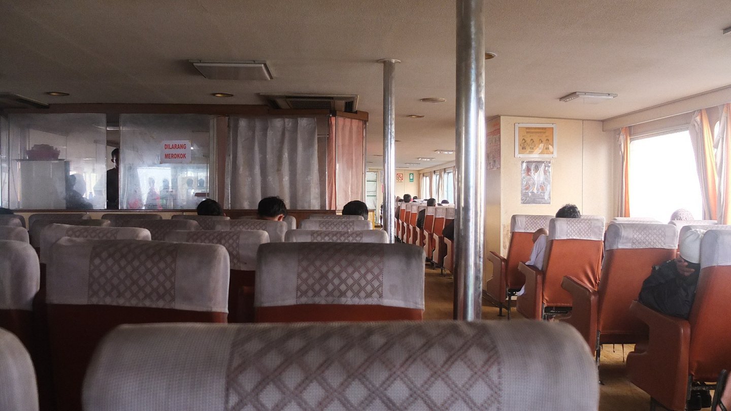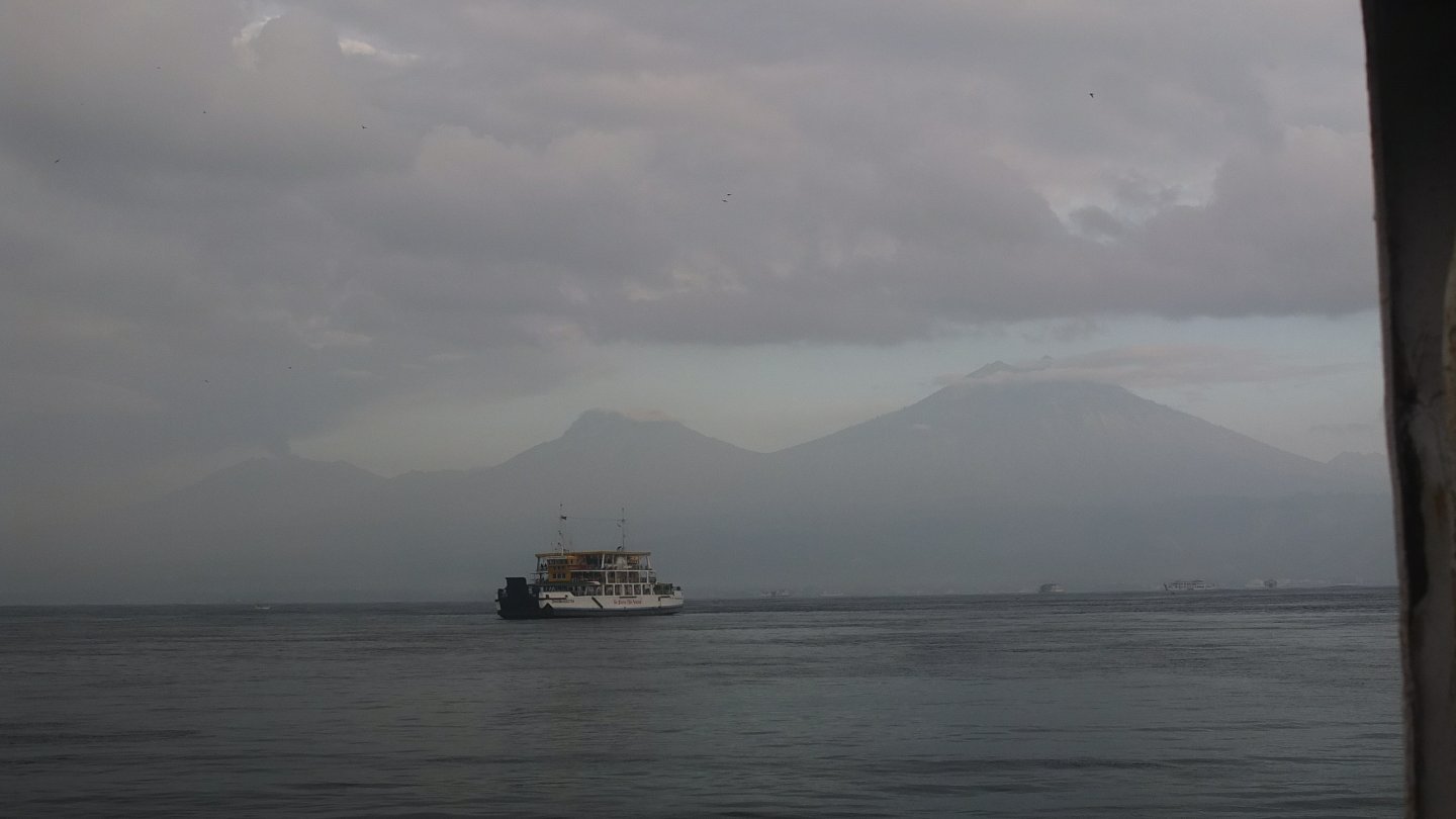 I’ve left my forest this morning and did not have any trouble during the night apart the singers… Then I came back on the same road again until Gilimanuk. There was a queue for the trucks, the cars, the motocycles and me? Well, my best solution was to follow the motorcycles. I had to keep my mask because 200 motorcycles waiting next to each other under a big roof is quite aweful. When I got to the ticket area a guy show me where to go and talked with a smile to the ticket man. Am I going to pay 3 or 4 times the normal price? Fortunaltely no. The price was shown on the window (8400Rp = 0.84$) for a 20 minutes “cruise”. Maybe we must row or something :-)