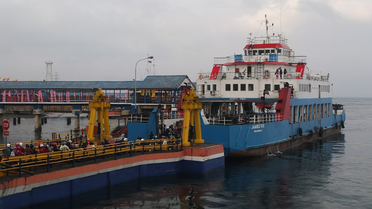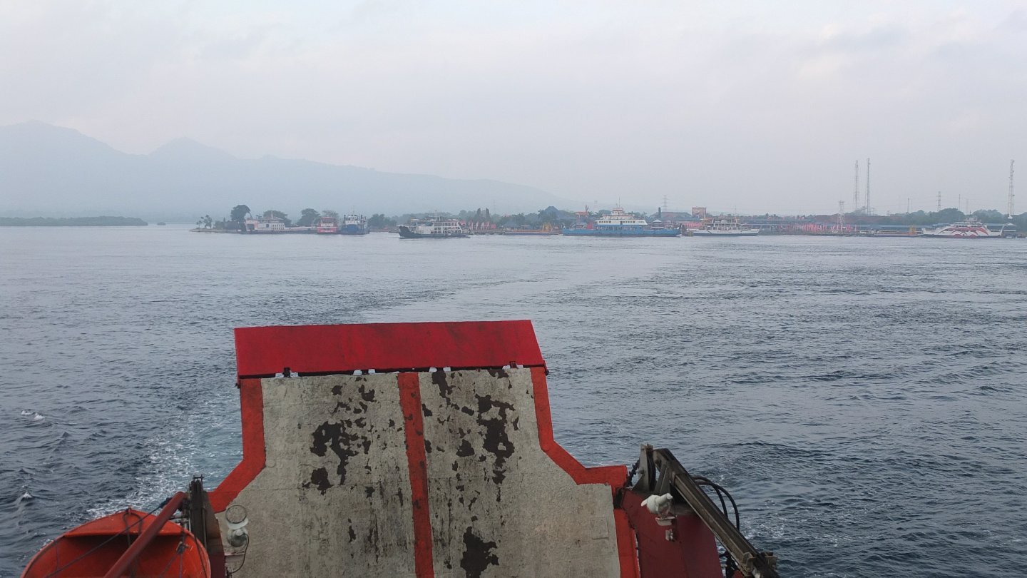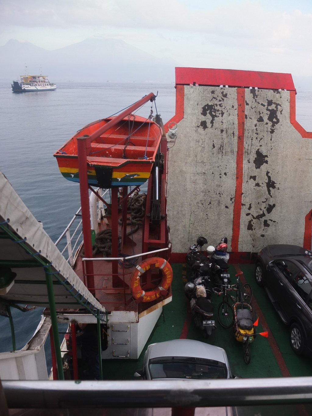 As I said, the crossing last around 20 minutes but we had to wait another 20 minutes until we got a free place where to ” land”. Finally I was one of the first to get out of the ferry. Java, I’m here! :-)