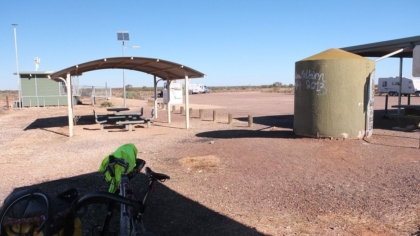 That’s it for today, I’ve done about 80km and reached Bon Bon rest area which has a water tank (with water in it I hope).