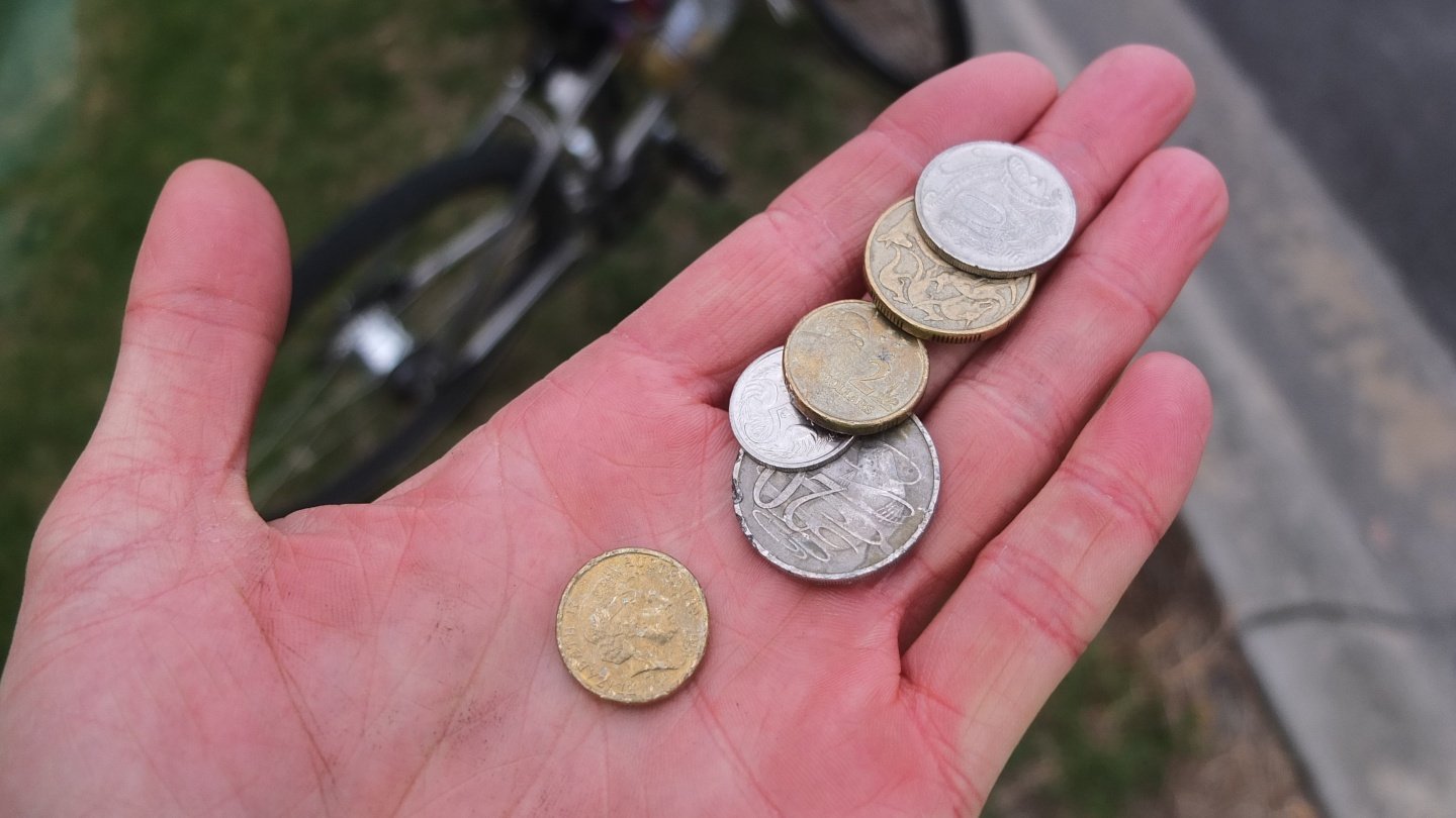 Now in Moe, I was cycling on this road when I’ve seen lots of coins on the bitume and recognise some 1 or 2 dollar coin. I stopped and walk back and…