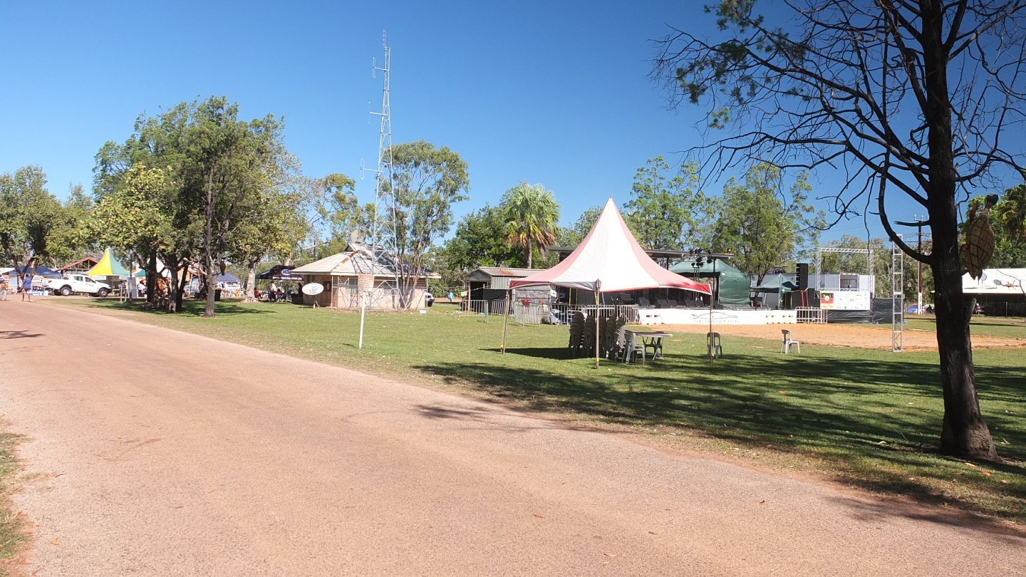 I’m now walking from the campsite to the main area where the show is going to happen. There is lots a green area in Barunga. The houses are spread around the place. it’s like a little village but with lots of space, especially lots of grass. It’s very nice. Apparently, Barunga is a nice community but it’s not the case for everyone.