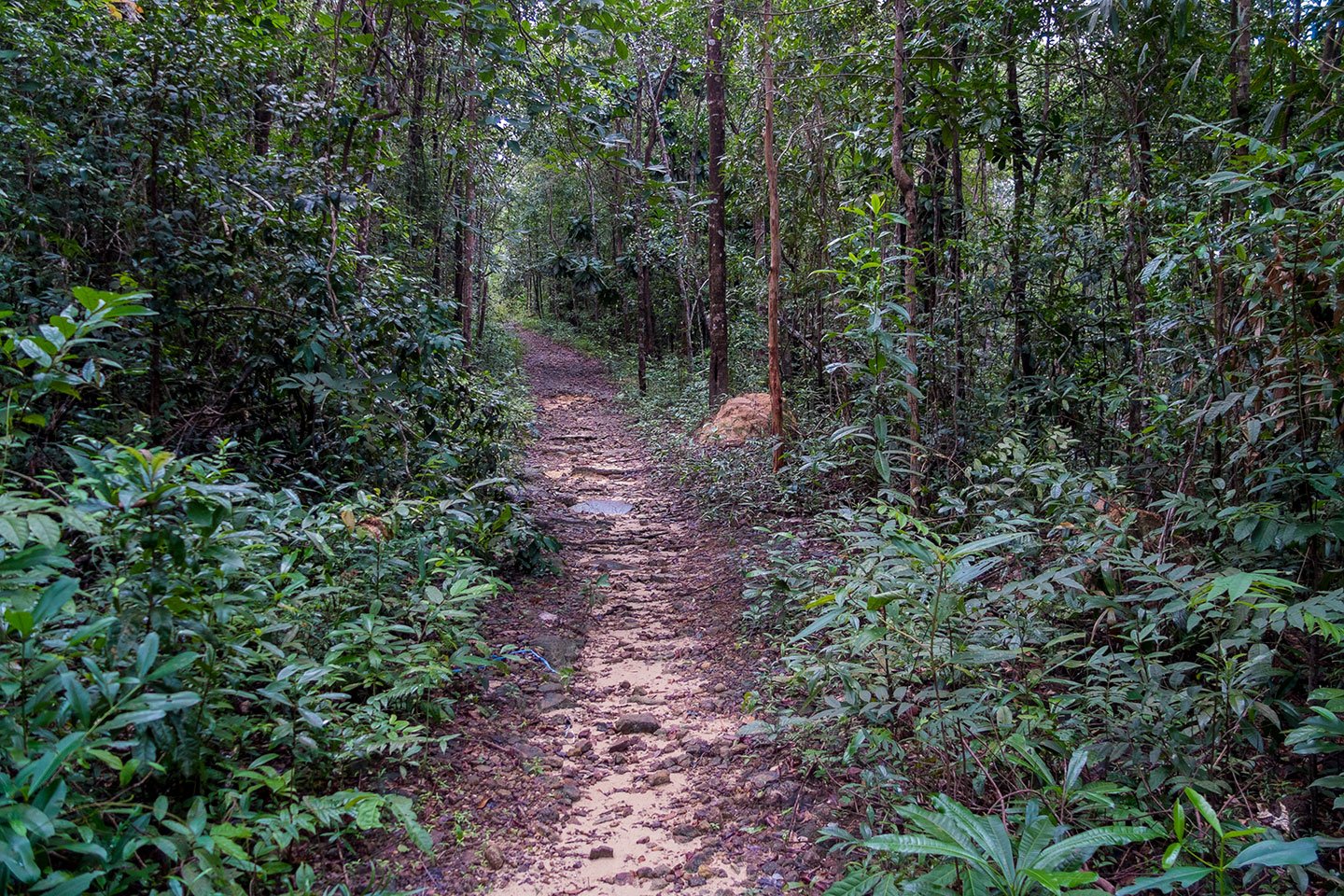 About 30 minutes later we reached the track which goes through a forest towards the other side of the island. The slope is very gentle and the track in good shape most of the time.