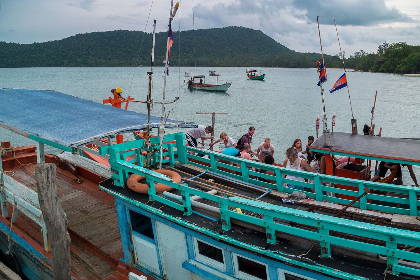 Time to disembark. We are not against the pier so we have to hop on two other boats first.