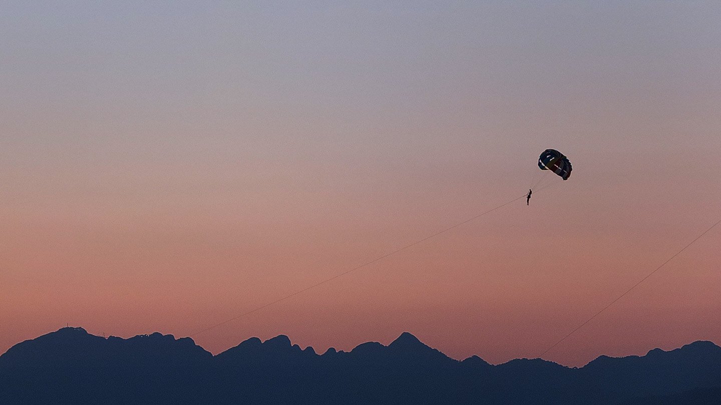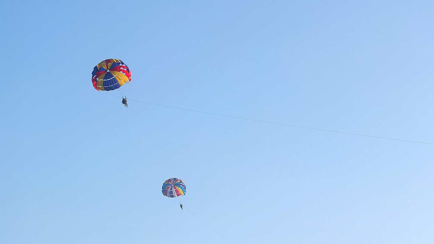 At the beginning, there was only 2 parachutes in the sky. But as soon as more tourists arrived, they kept running more parachutes up to 6, or 5 I’m not sure.