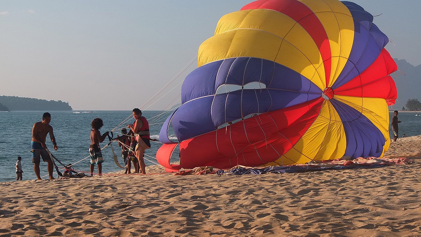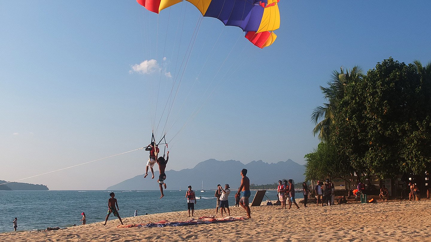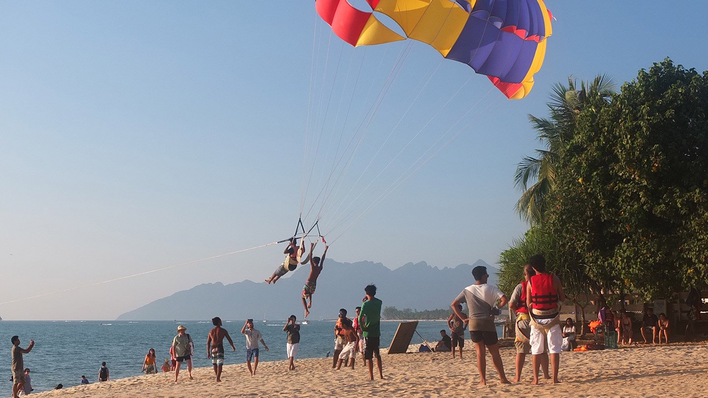 If I was a tourist, not a traveller, I would have tried I guess. 130 ringgit, this is about 4 days of food for me! The best option would be to use this parachutes as a transportation to go on another island. You go the morning, enjoy a part of the day on one island, catch another parachute, visit a second island, do some snorkeling and finally come back on the beach. I would feel I spent my ringgit for something useful more than just turn in circle.