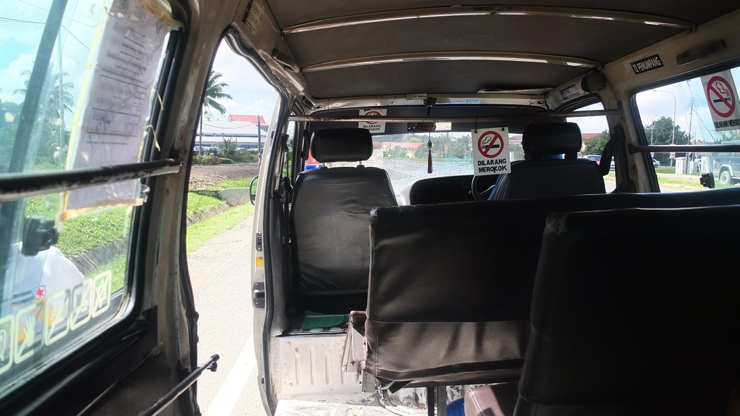 That was actually pretty easy! As soon as we got there, a minibus arrived and a woman invited us to get in. Cool! The price to Sandakan is 2Ringgit, perfect :-)