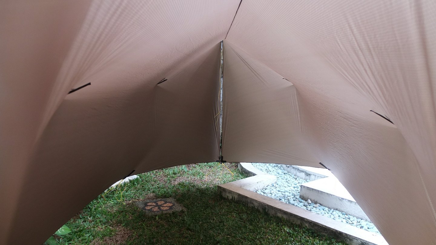 As I try to minimise the number of accessories, I’ve replaced the back rope with the tent’s bag.