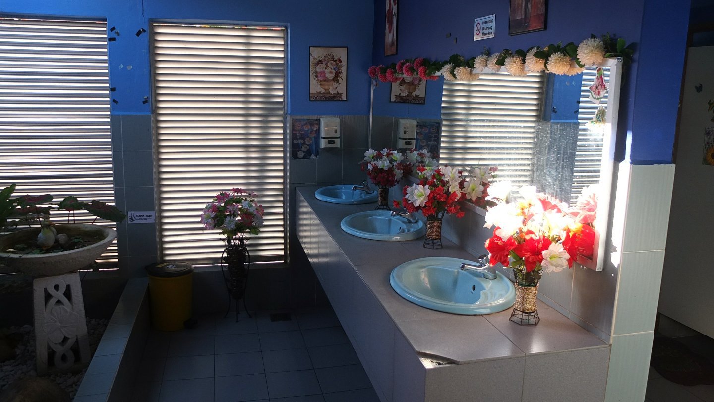 Around 8:30am we stopped to have something to eat at an indian place. Two Roti canai for 2 ringgit and one tea for 1 ringgit. Cheapest breakfast ever! This time I didn’t take the picture of the place but the toilets. Why? They are the cleanest toilets and most beautiful one in Malaysia :-) Fake flowers ok but still very nice :-)