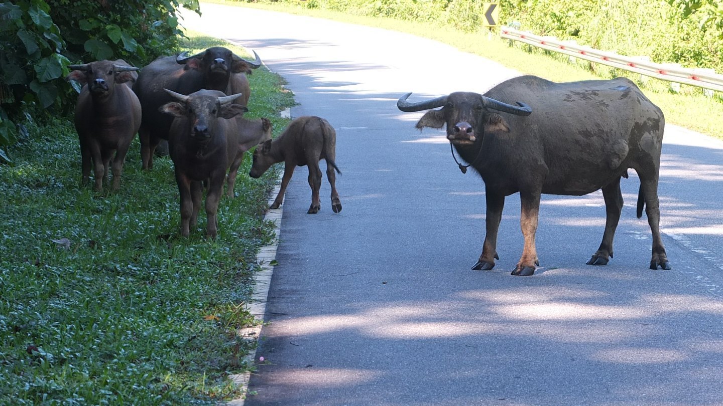 Okay guys, don’t be afroad, I’m just a cyclist. I’m not hungry, I won’t eat you. Don’t charge me okay? okay?