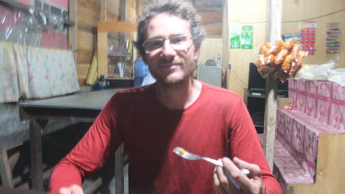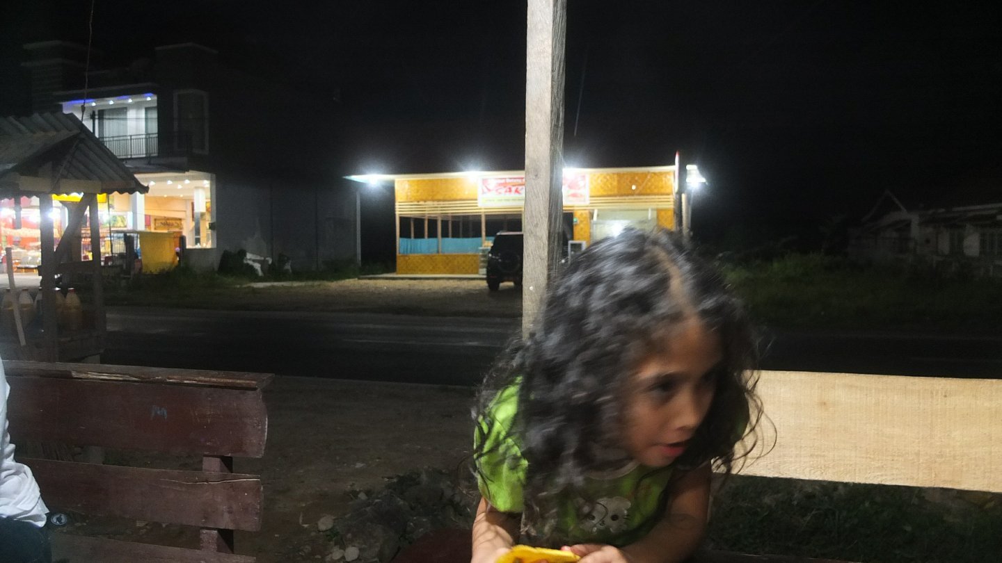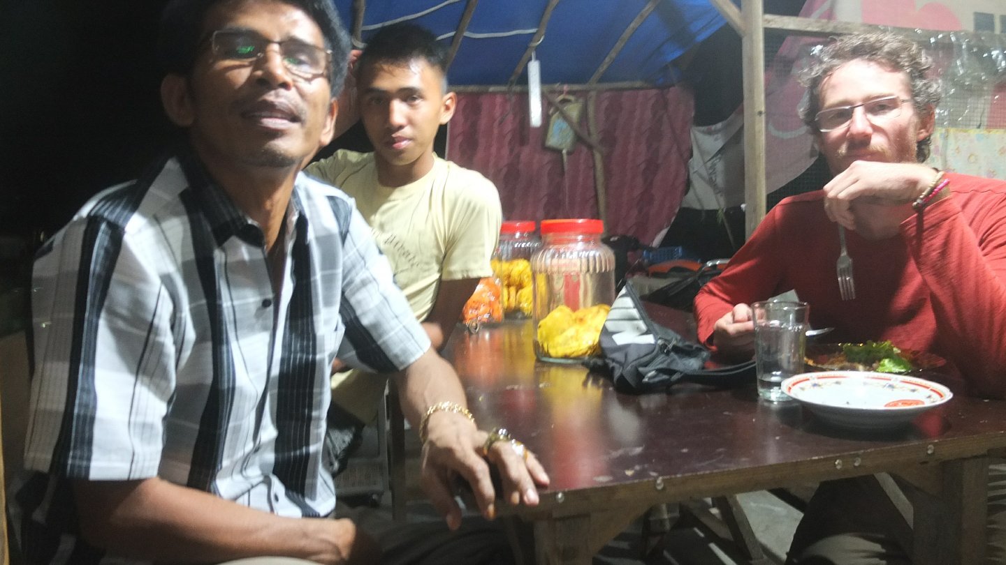 The time has passed and I’ve done 90km today. I stopped in a Warung where I met a family.