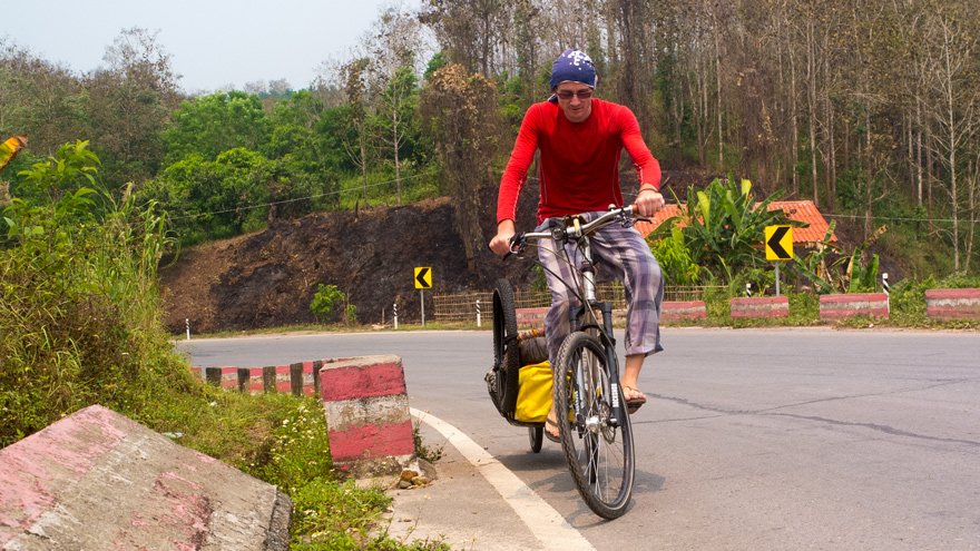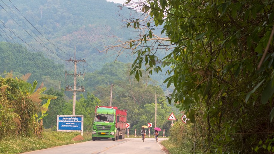 A moment ago, I’ve met an American cyclist who is cycling towards China. We did not have the time to talk very much because we go in the opposite direction. Like I said before, China is not very far from here. This portion of the road where I am now is the main road between the Laos Capital and the border.