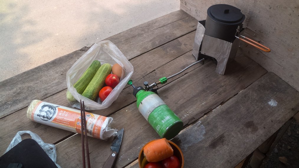 In Luang Namtha, I bought some food because I want to cook again one or two times per day to save money. The food is a bit more expensive than Thailand here so I’m back as a chef ;-) Very simple food: Noodles, carrot, cucumber, tomatoes, onions, eggs and some chinese flavour.