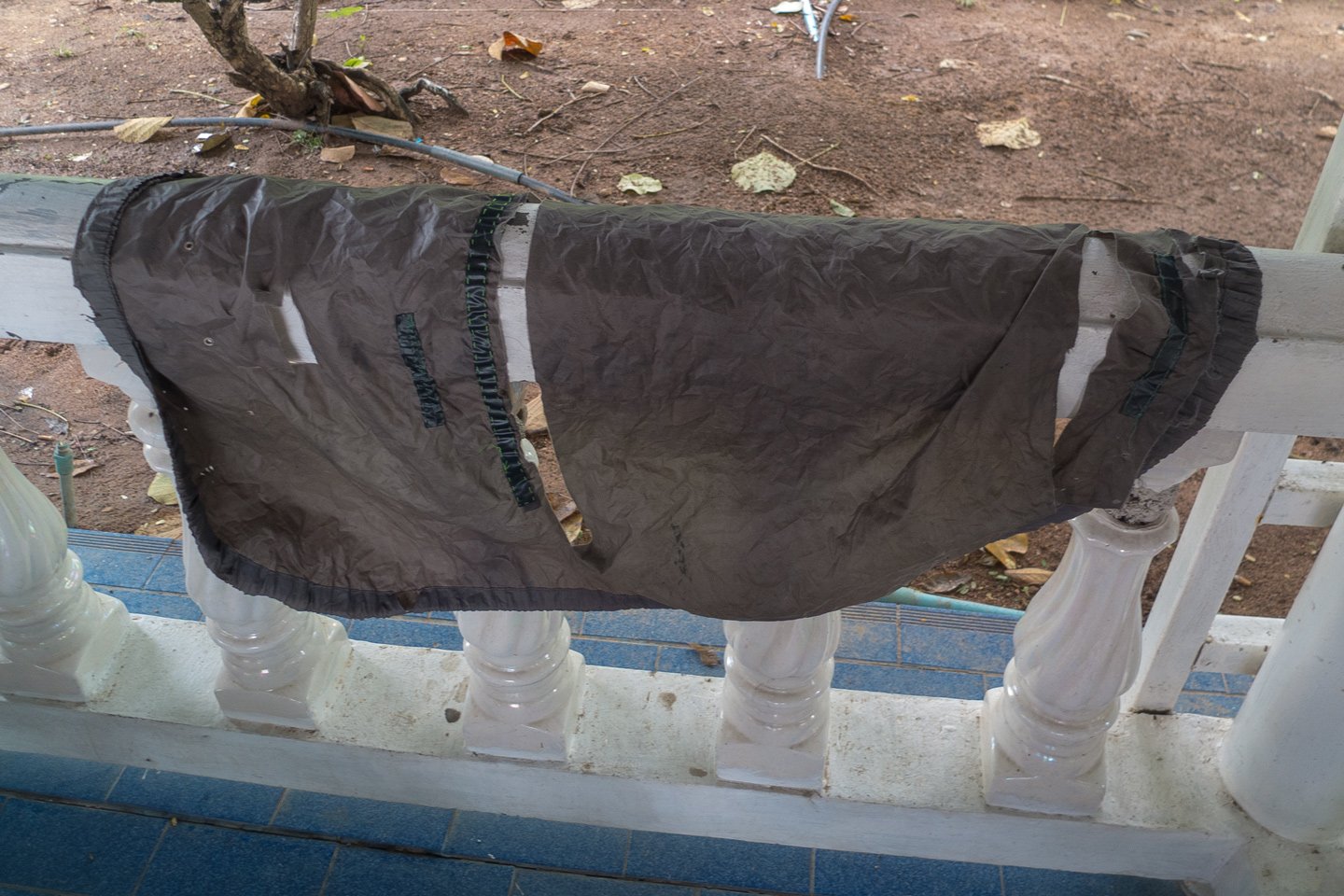 That’s my old backpack raincover. I’ve fixed it many times but now it’s really messed up… During the last weeks, every time I manipulated it I would make a new hole here and there. The material has been weaken by the sun over the last four years of use. That was time to change. As you said Yoko, it’s more visible but the material is not reflective. Has the proverb says : “At night, every cat is grey”. So, I guess, a driver won’t see a lot of difference between the old one one the new one. I rely better on my flashing usb light :-)
