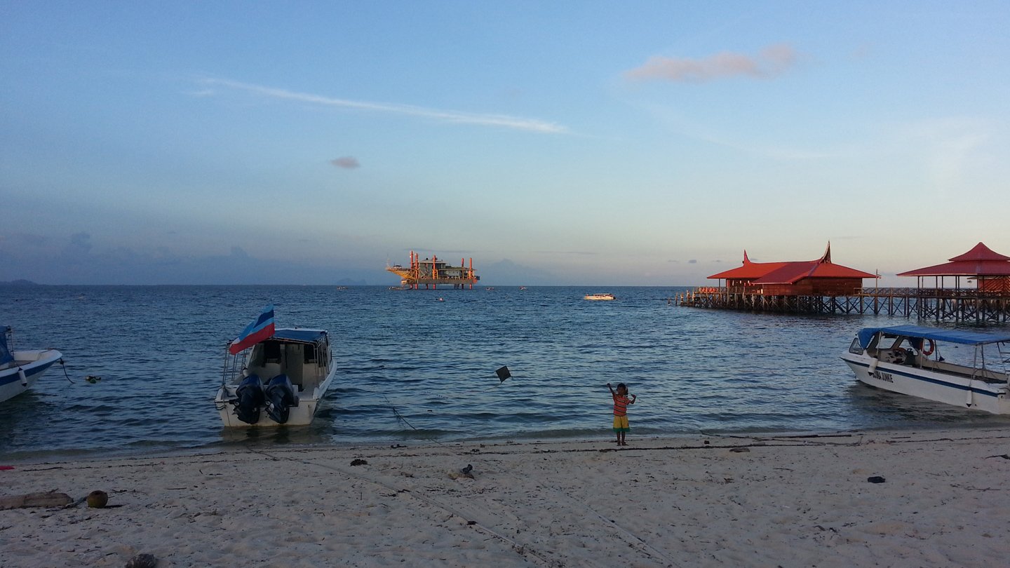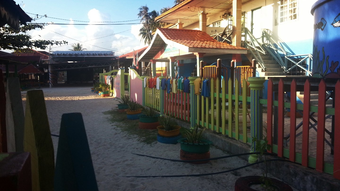 Suddenly, we crossed an imaginary line and came back to reality. The thing that looks like a petrol station is actually used as a resort. There is 6 resorts on Mabul Island.