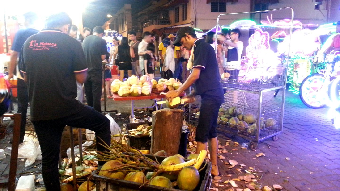 For the last night in Malacca we decided to visit one more time Jonker Street, the famous market that’s opened every friday, Saturday and Sunday night. As usual, the street is packed with tourists from all over the world. The clever thing here is that they alternate shops and food stand so there is always something to buy. Personally, I don’t need anything as I’m carrying enough stuff already.