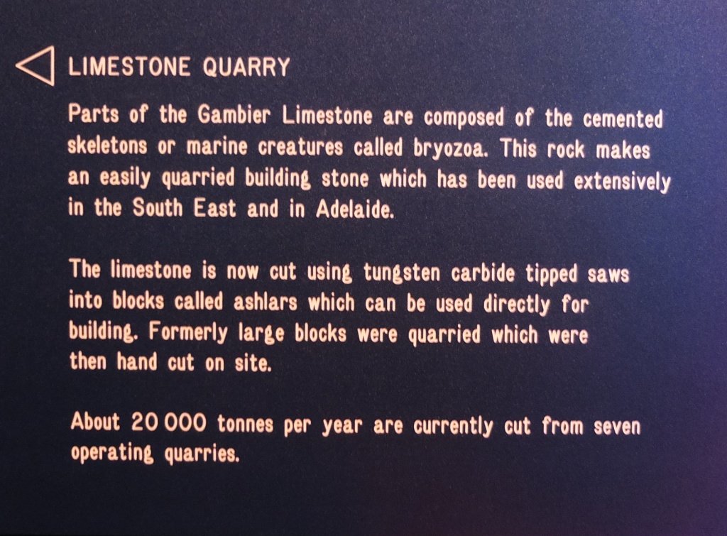 The museum retrace the history from million years ago until now showing how this limestone was formed or how the Aboriginals lived. Of course there is the story of the Europeans invasion.