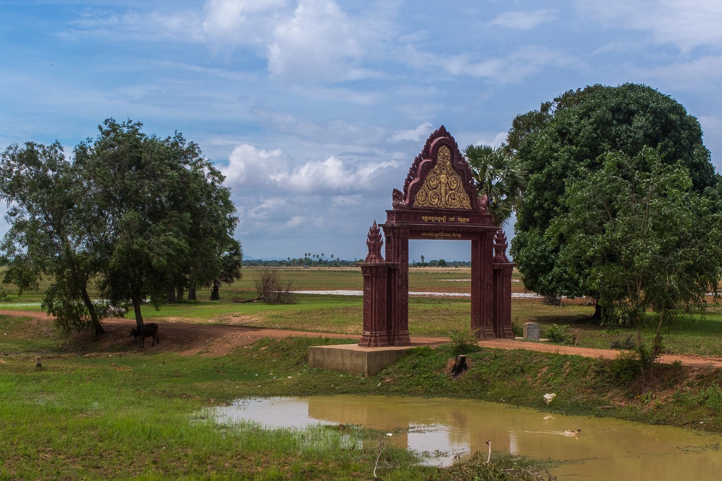 After this nice break, talking english with two people in a short period of time, I came back on the saddle. That’s the first Cambodian temple I come across. Let’s have a short look. It’s looks new.