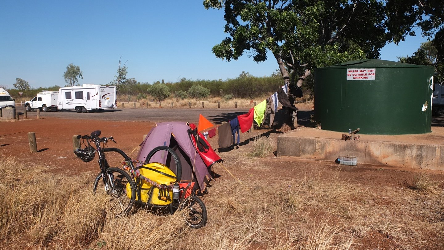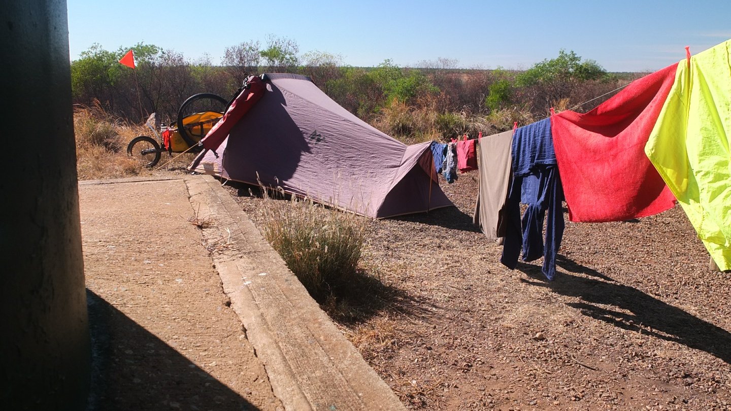 I always feel better when I’m next to water. So I found the best spot here! My tent is pitched 2 metres far from that water tank :-) I could not be closer. Well, physically I could but it’s not mine :-) Yesterday night, this rest area was full! it’s now 9:30am and nearly every caravan has left but a couple arrived already. The turnover is quick! I’m not going anywhere today. This is a rest day. I’ve washed all my clothes using as less water as I could. I enjoy reading and doing nothing. This is holiday!