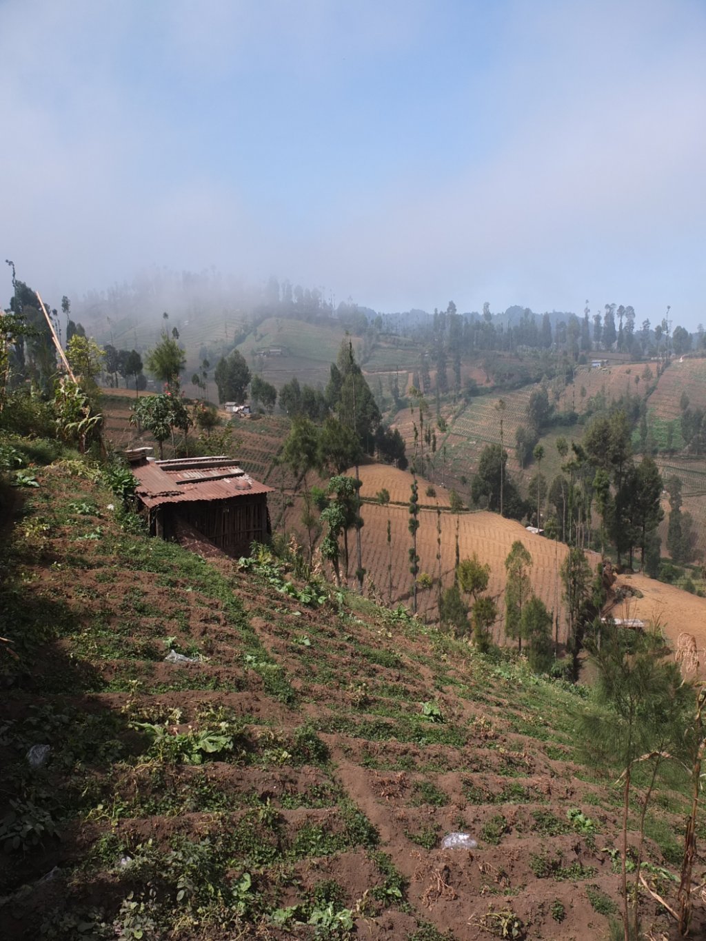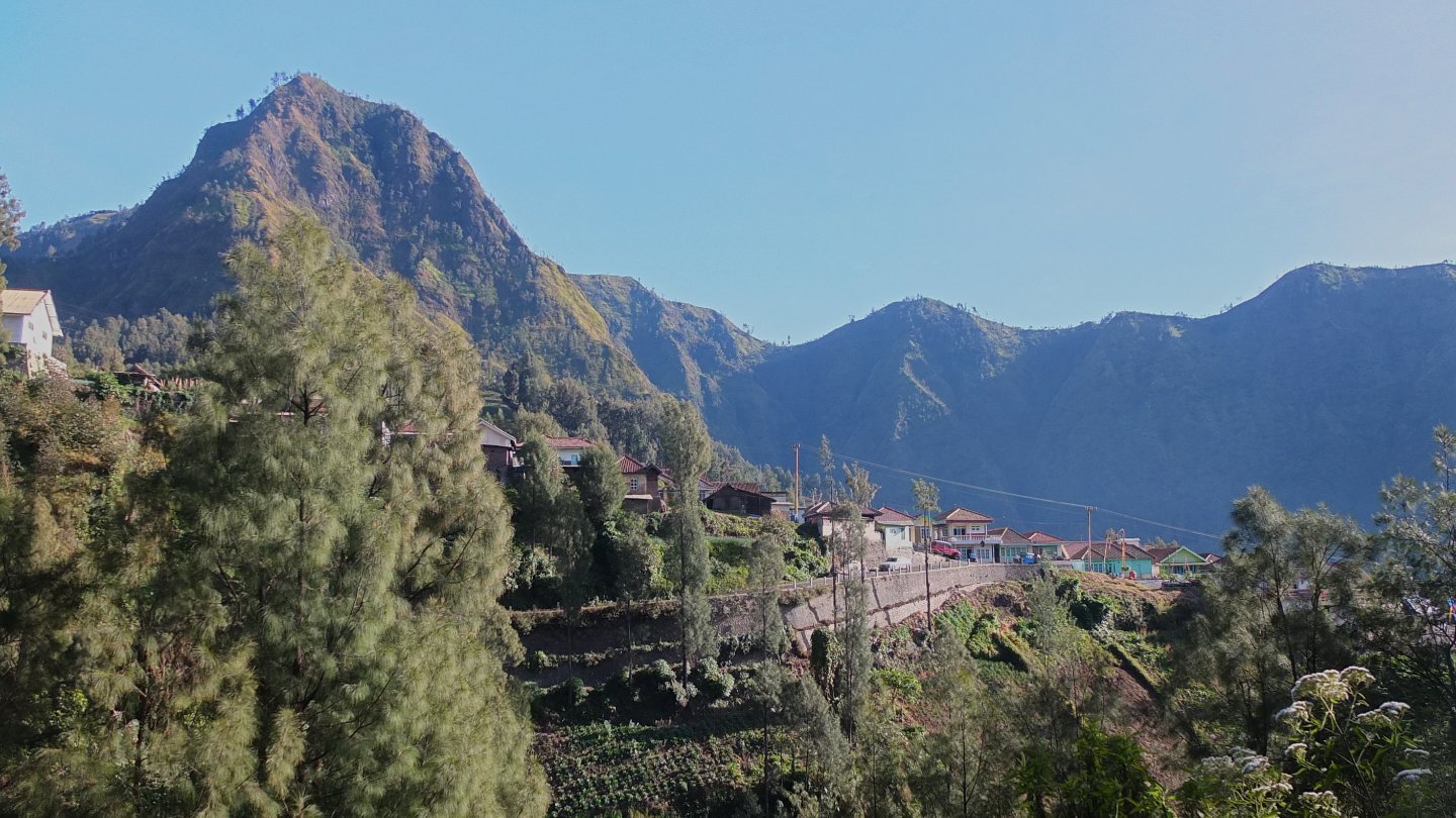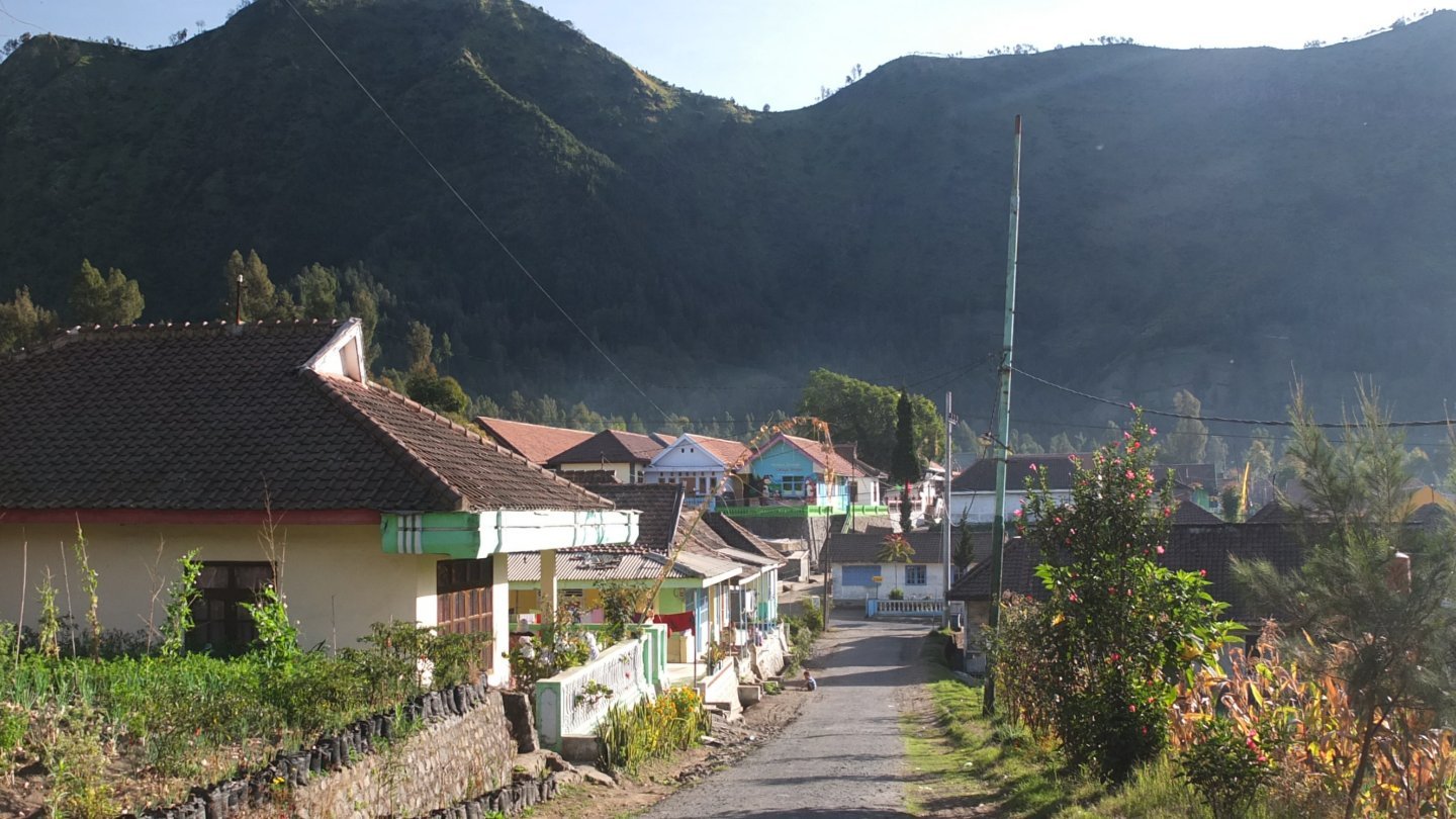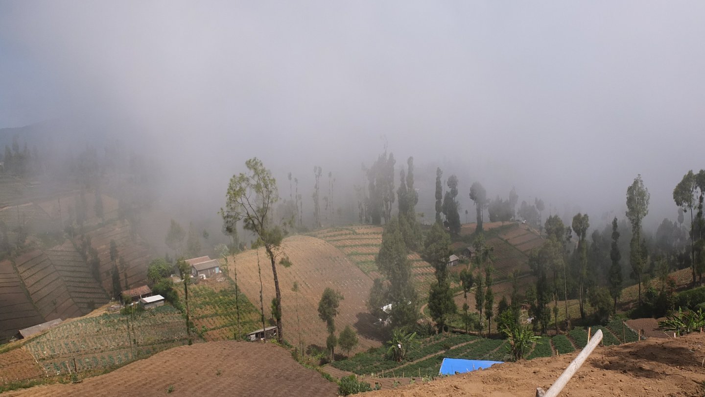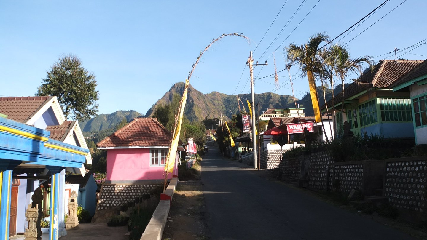 Let’s start from the beginning of this day. As always the weather is pleasant and the sun was much quicker than me. I’ve know and maybe this is the worse, that steep hills are waiting for me for the next 6 km. Even, yesterday when I arrived to the village and was looking for a homestay, I met a group of French people who just came back from the Bromo Tour and a woman told me that the part from here to the top will be hard. I don’t care, I will make it even if I must walk on my knees!