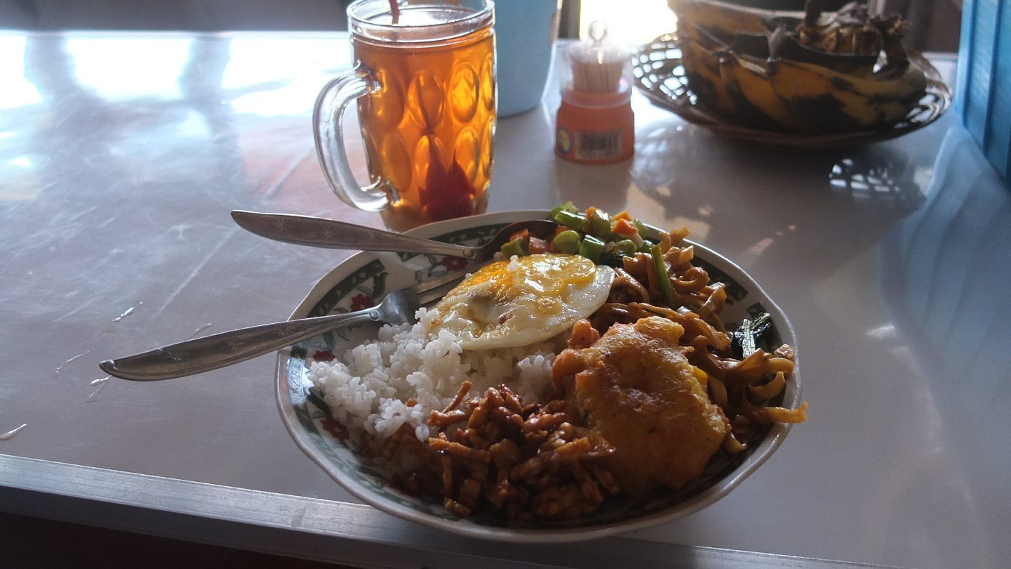 Before entering to the National park, let’s have some breakfast. I’ve picked up nearly the first Warung along the way and got lucky because the food is very nice :-) Later on, when I was eating, Two guys and a girl, I guess Australian, came in. There were discussing about the food then asked me: “Do you know where we can get some food and beer in the SAME place? Ahhaha, white guys always want their disgusting beer. Sorry, I don’t like it. Men, you are in Asia and the Tea is delicious. Come back in your country if you can’t eat and drink local but expect the same confort you have in your country. No effort what so ever, seriously…