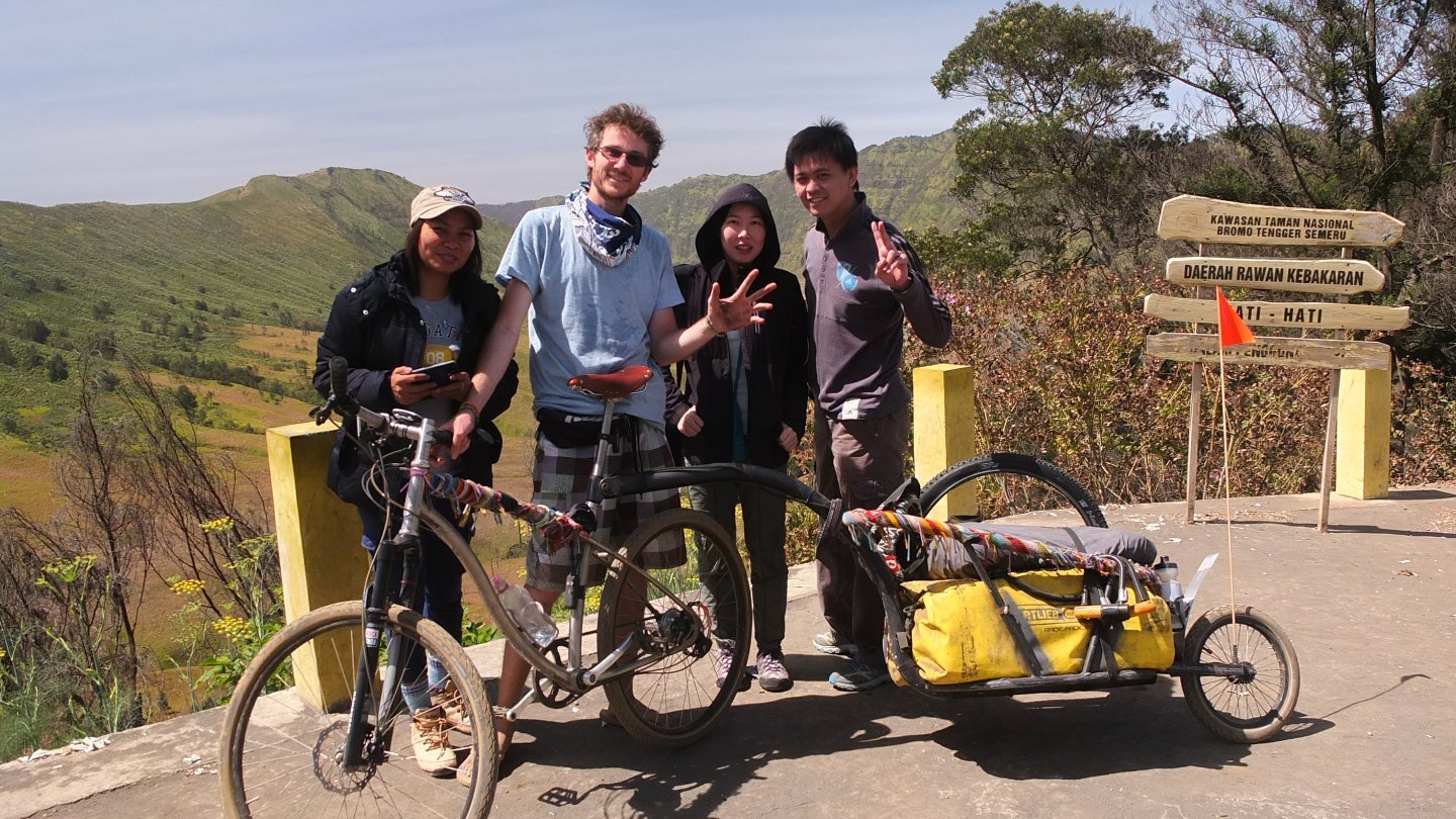 I’ve met two guys on a scooter, from Borneo. The guy asked me to take a picture with me haha. Ok, ok, if you want :-) He said he doesn’t see many people like me here but when he took the picture he did not include my bike. Personally I don’t care but when he will come back to Borneo and will said to his friend that he met a cyclist in Bromo. How come they will trust him as they will only see a white skinny guy with no bike haha. Again, I don’t mind but it doesn’t sound right to me. It’s like people who goes in holiday and only take picture of themselves; “Look, I was here, and I was there, and I was here”. Taking picture of the landscape, what you’ve seen, the atmosphere, the colours, is much better to me that shooting yourself. Well, everyone is different, hey.