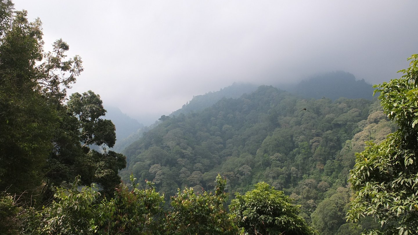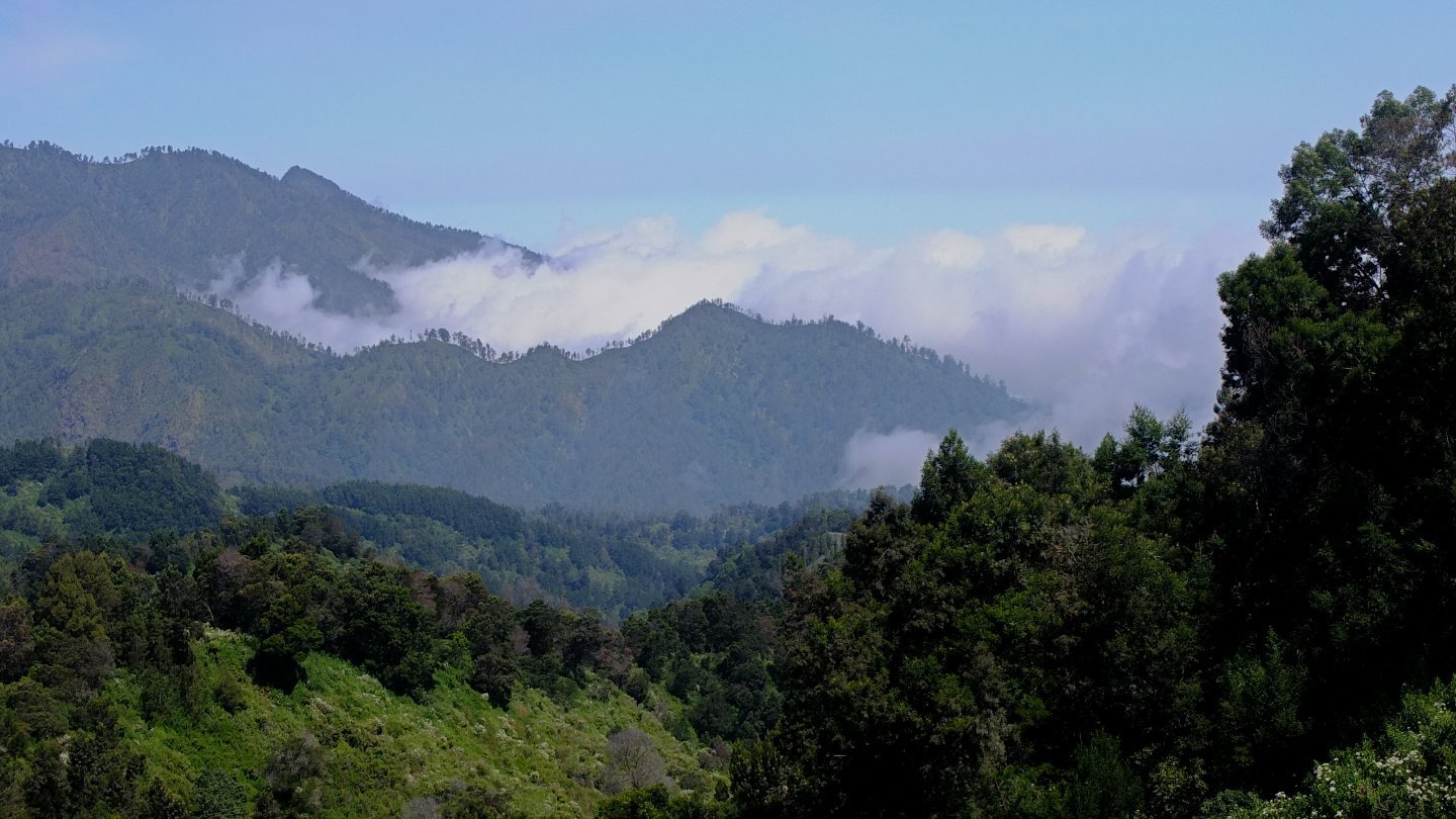 The road turned out of the clouds and I’m now reaching a luxurious green forest.