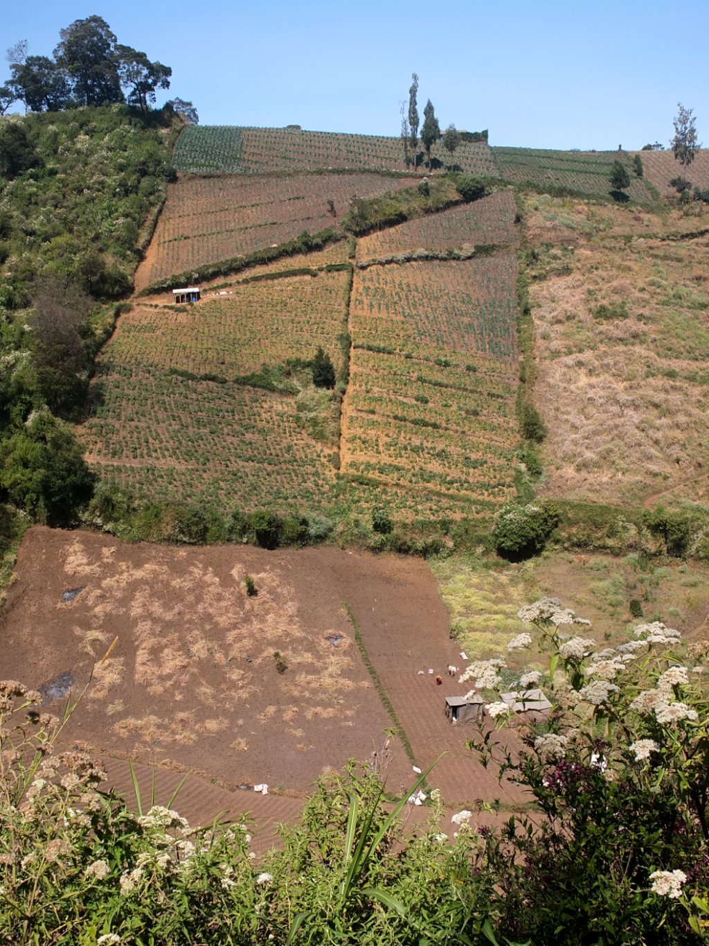 The vegetable field on the slope is amazing. How can they hold water?… I hope they don’t have heavy rain like us.