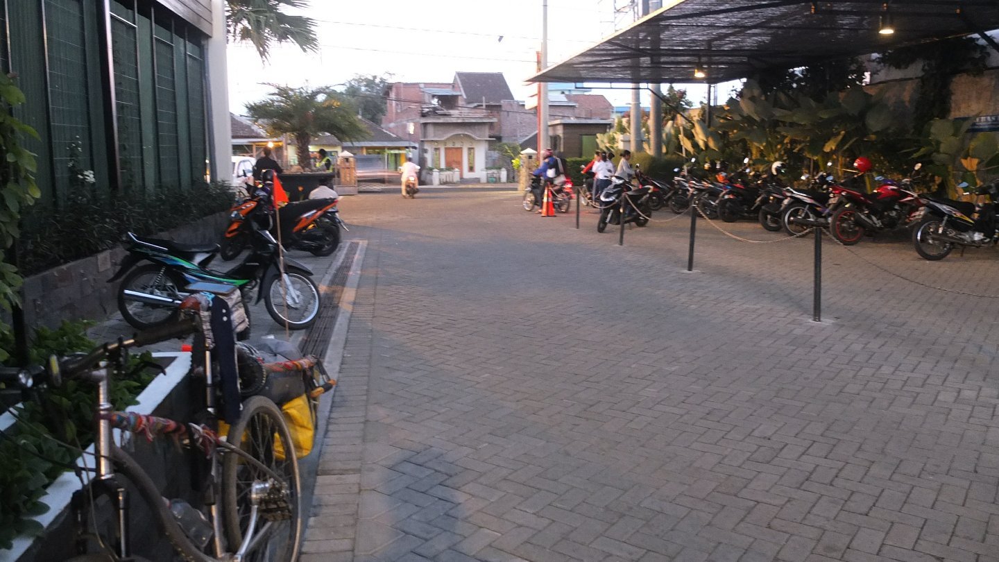 This is how I’m organise the thing now. When it’s becoming dark, around 5:30, I stop to have dinner in a Warung and take to time to check on google satellite view where there is a patch of green grass like a football field. Last time it did not work but there is no reason why it would fail twice in a row. And I’ve found one 2km away from here! Let’s eat and sleep :-)