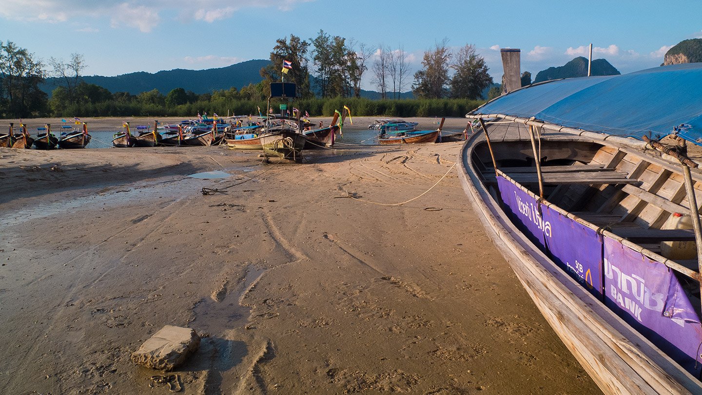 The tide is very low now. From here we can see both Noppara Thara beach and Ao Nang beach.