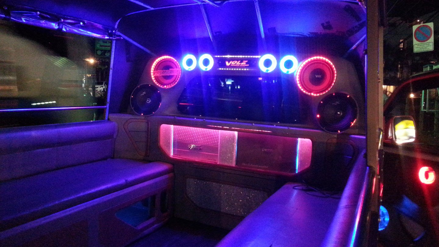 Not much to see here a part the beach, the shopping mall and night life. That’s a Tuk-Tuk, a very modern one. It doesnt have 3 wheels anymore but four like any other car. It’s just a tiny van and people sit on its back. The Tuk-Tuk here (like Krabi) are even more special because they have a huge sound system with neon…