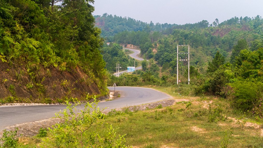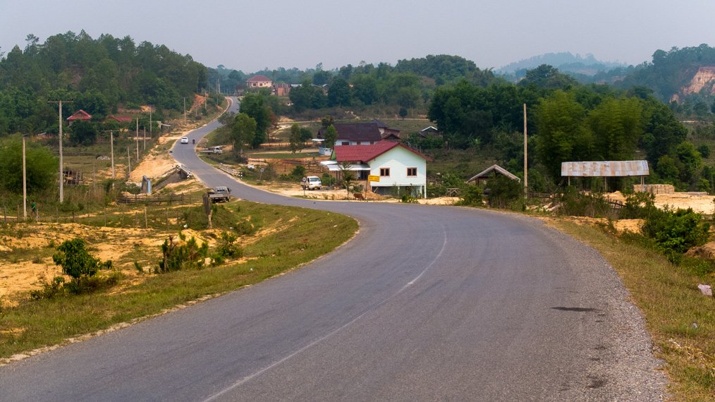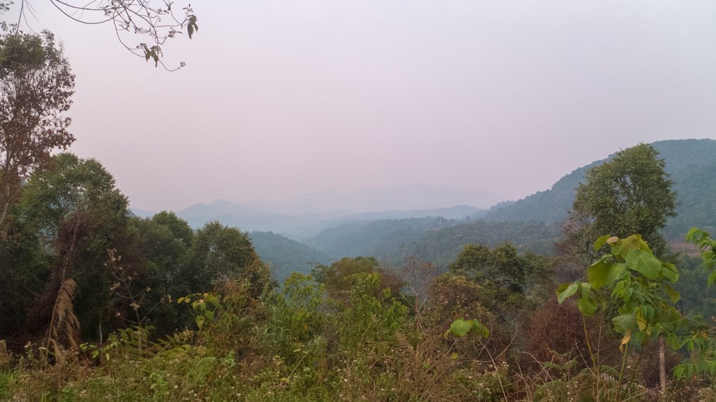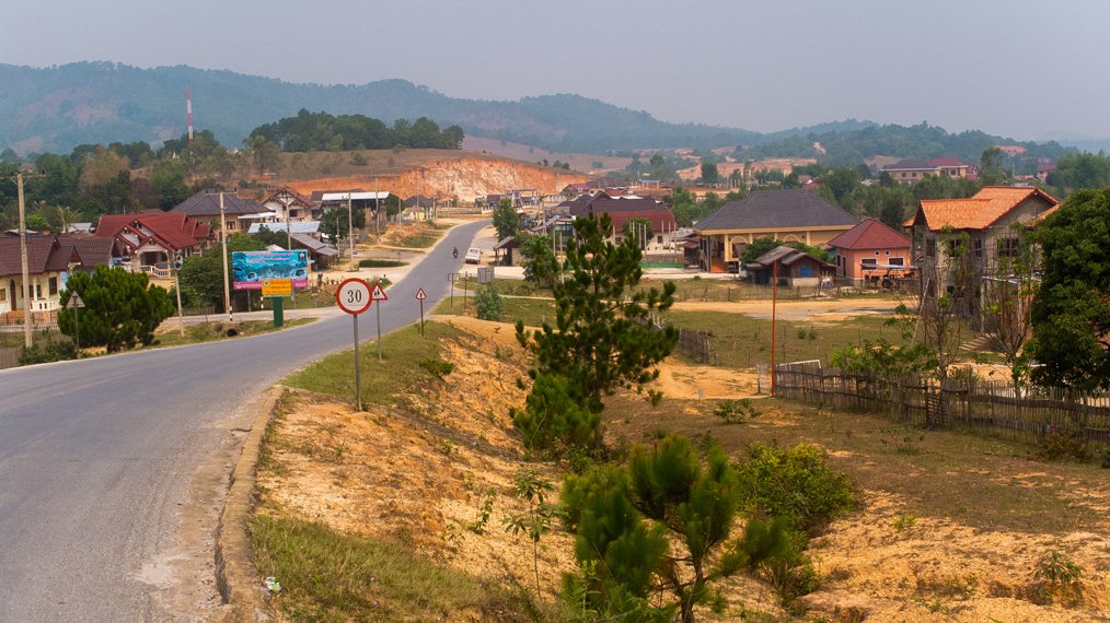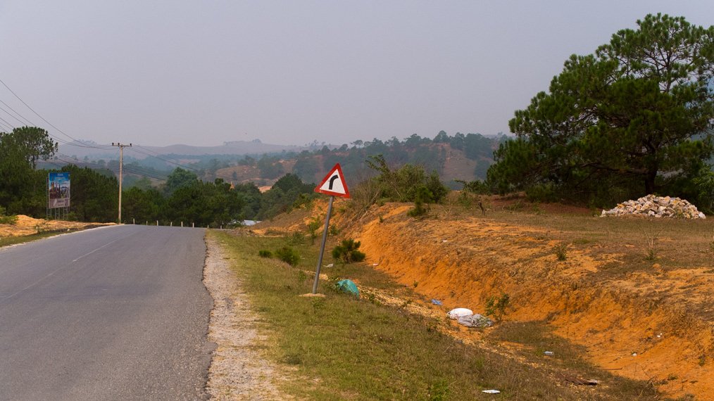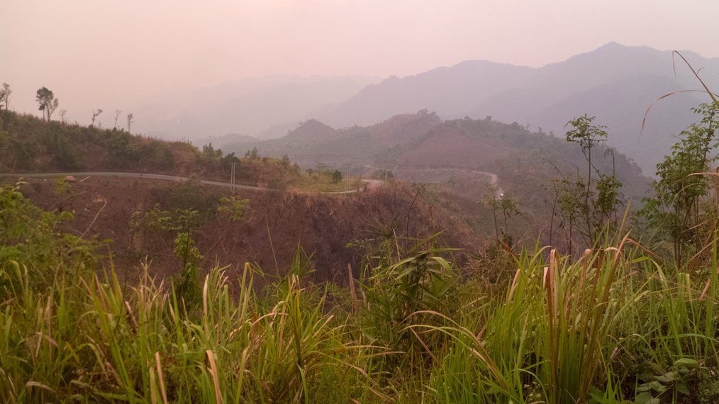 With some short hills. That’s very surprising how the landscape changed too. Here there is pine trees which I’ve never seen until now in Laos.