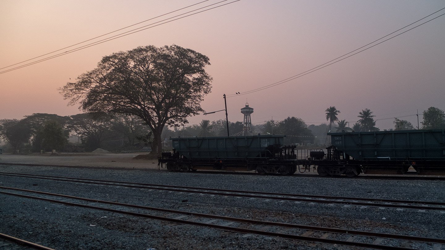 The cheapest train this morning was the one leaving at 6:08 and arriving at 8:35 at Bangkok. That’s 2:30 hours to cover 120km. Not the fastest train of the world but slow enough to open the window and enjoy the landscape :-)