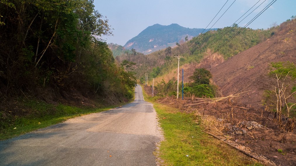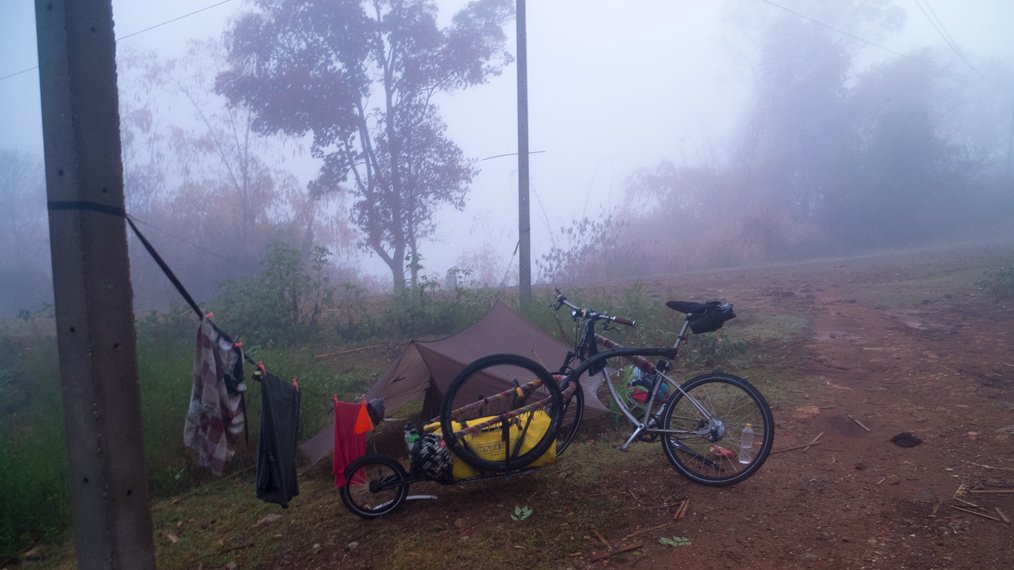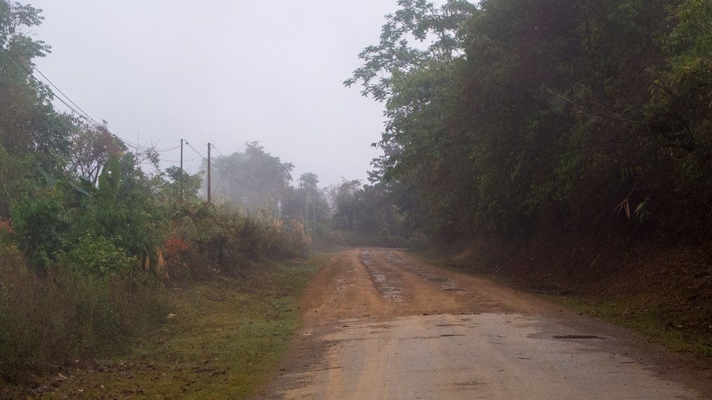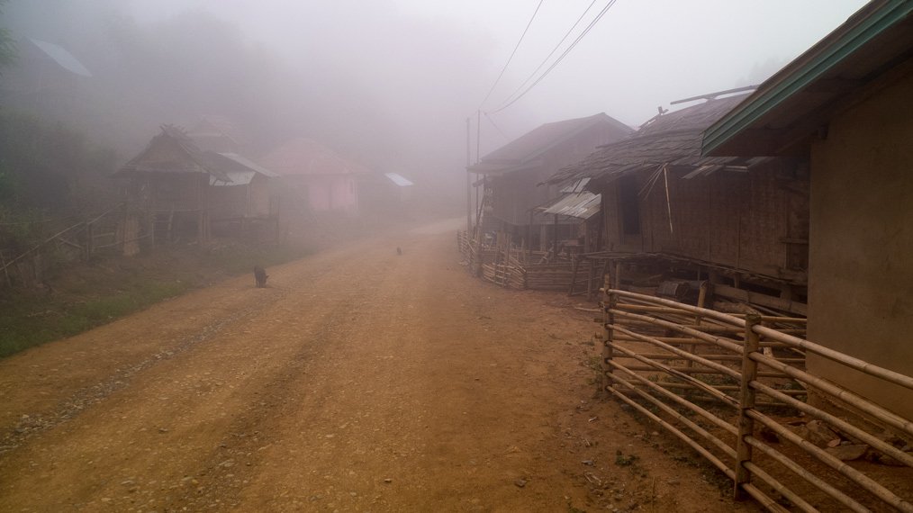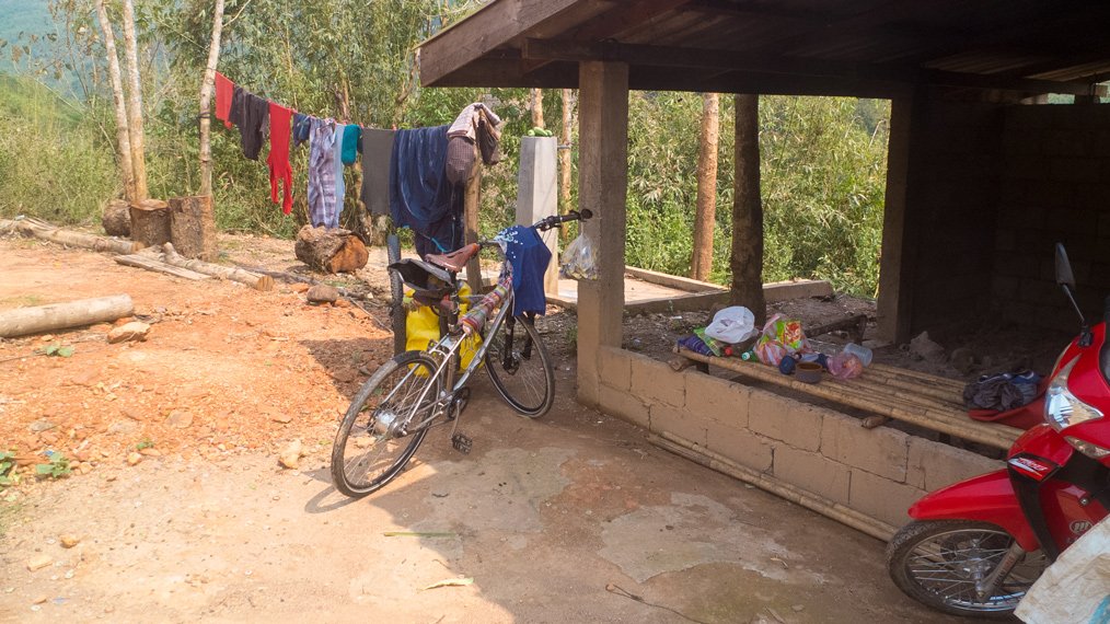 I started the day in the mist. During the first hour I could not see very far. The first part of the day was easy compared to the second part that was much steeper. I had to push my bike few times. I finished cycling at night today and experienced another storm later on. The weather in the northern part of Laos is very different compared to Northern Thailand. It’s raining almost every night. Well, rain only would be okay if strong wind, strikes and thunder would not join it each time.