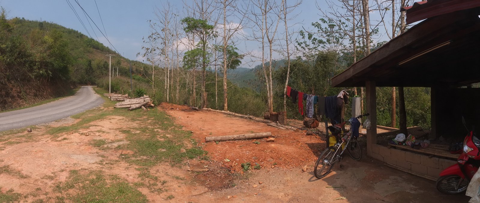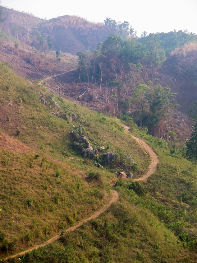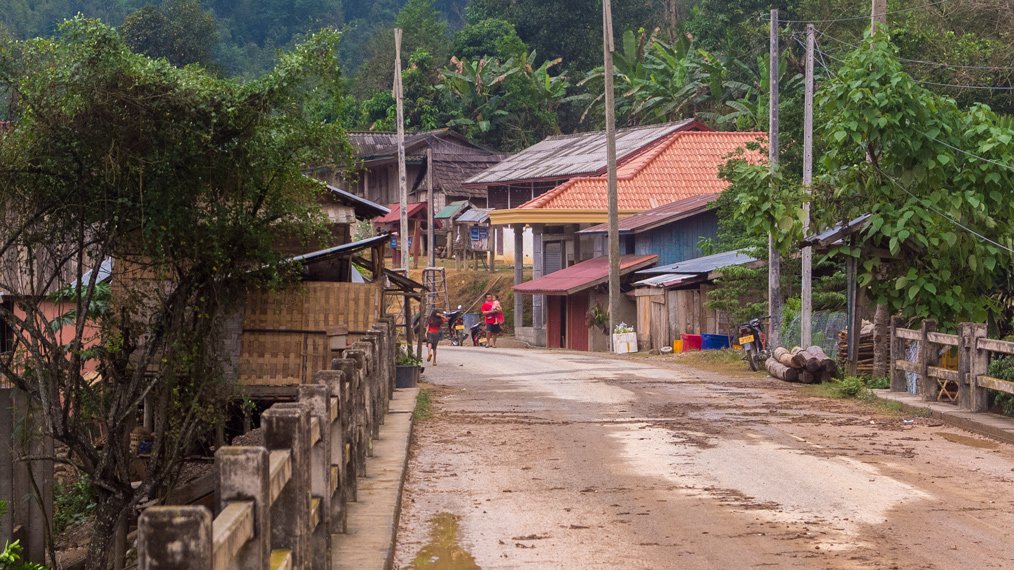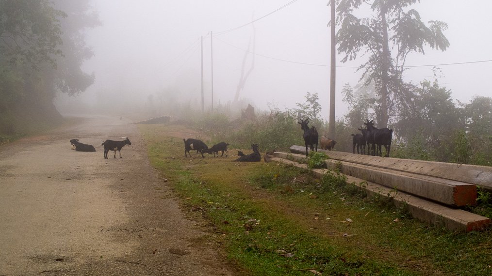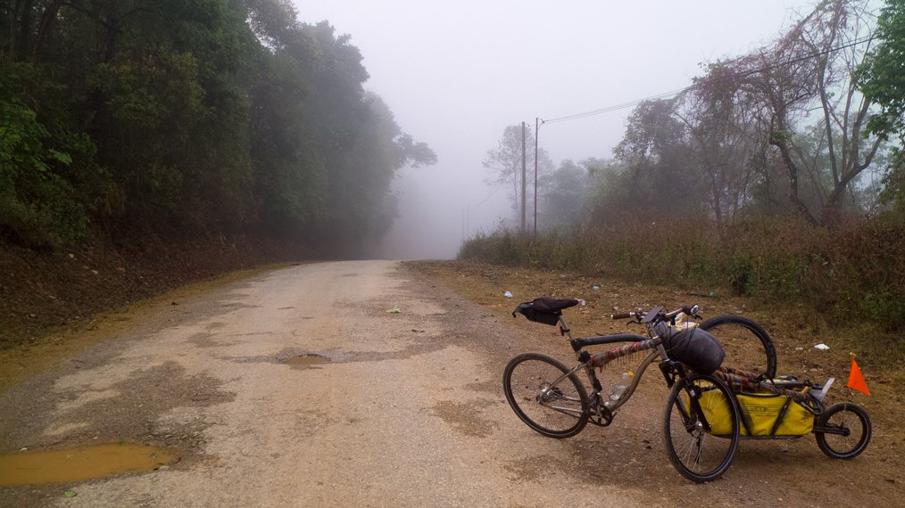 I started the day in the mist. During the first hour I could not see very far. The first part of the day was easy compared to the second part that was much steeper. I had to push my bike few times. I finished cycling at night today and experienced another storm later on. The weather in the northern part of Laos is very different compared to Northern Thailand. It’s raining almost every night. Well, rain only would be okay if strong wind, strikes and thunder would not join it each time.