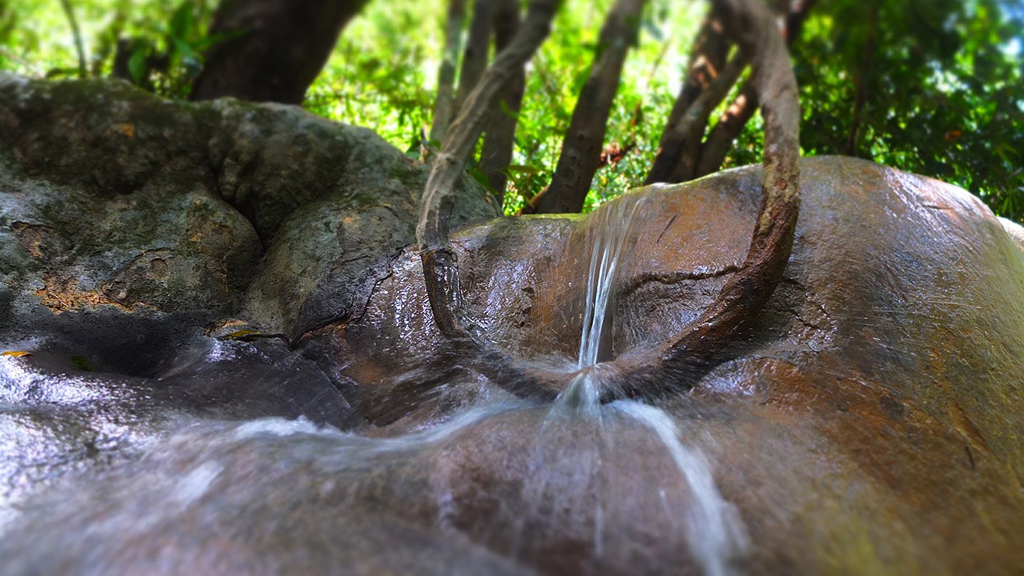 Sympa la cascade ! On dirait que l’eau a usé les pierres et que cela a mis les racines des arbres à nu !