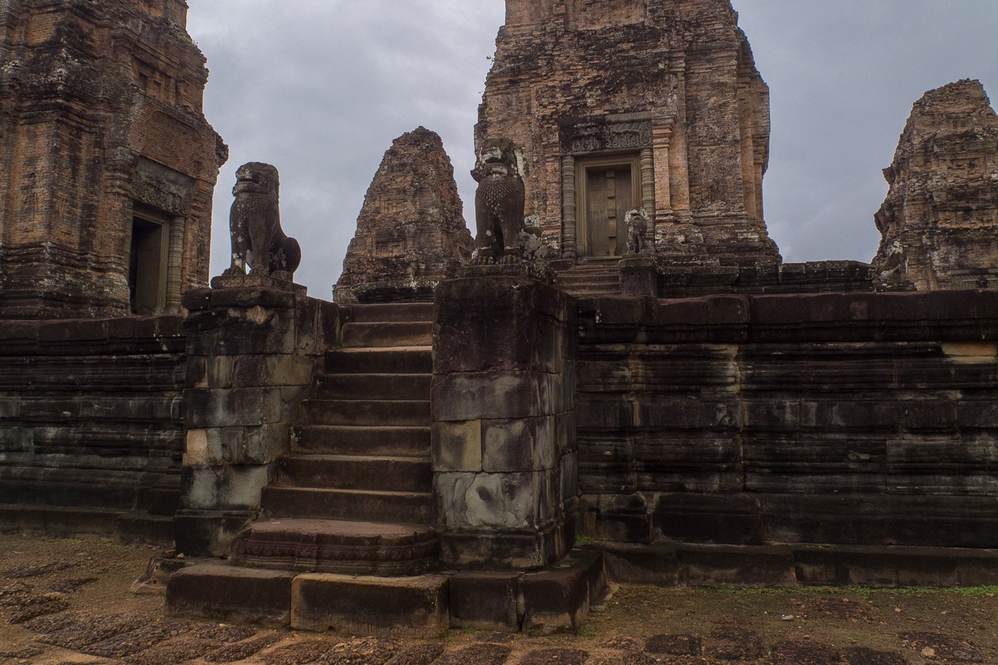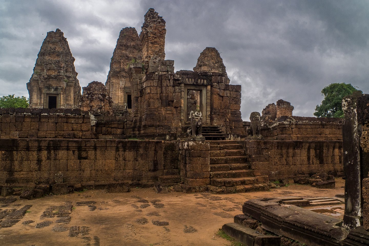 Eastern Mebon (Khmer: ប្រាសាទមេបុណ្យខាងកើត) is a 10th Century temple at Angkor, Cambodia. Built during the reign of King Rajendravarman, it stands on what was an artificial island at the center of the now dry East Baray reservoir (wikipedia source).