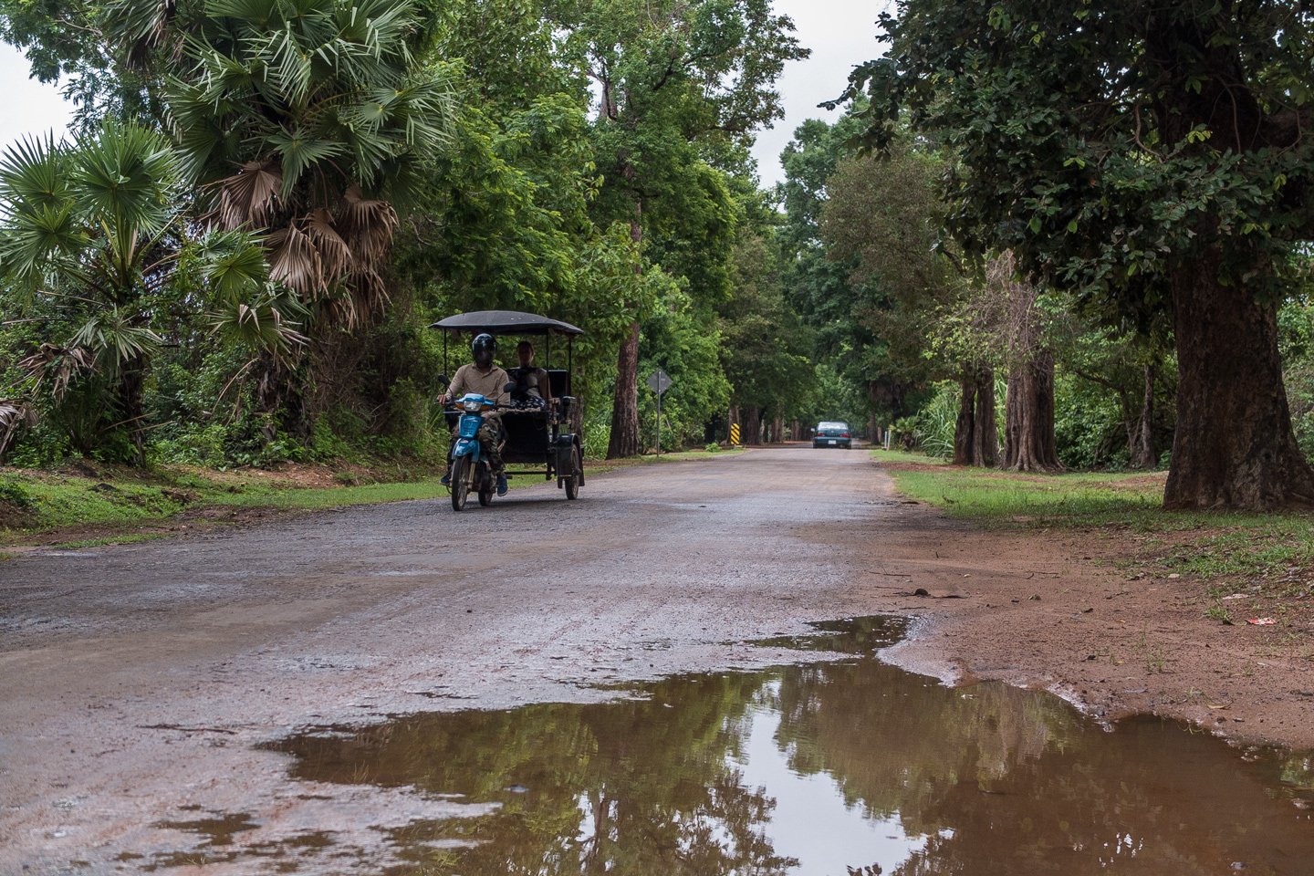 Cambodian way of working :-) The tuck-tuck driver brings visitors front of the temple and waits for them playing on his mobile or sleeps. Even some guys have an hammock attached in diagonal to be more comfortable.